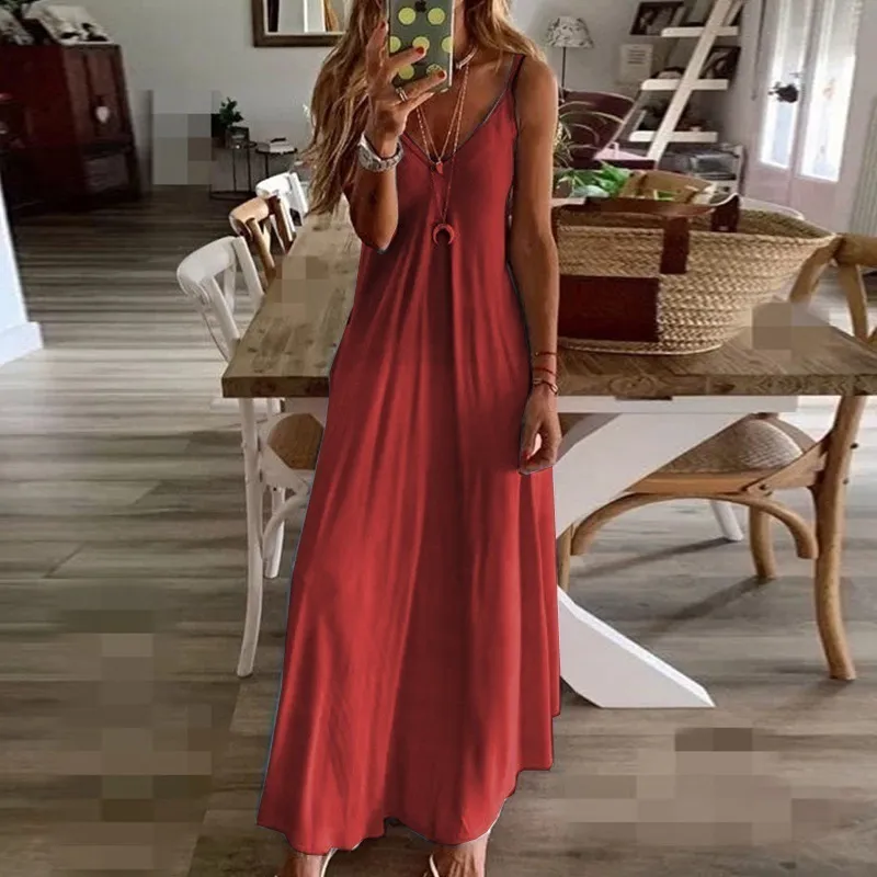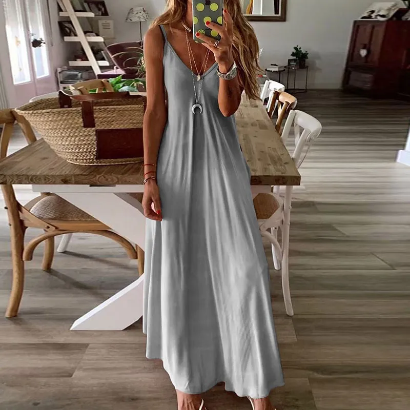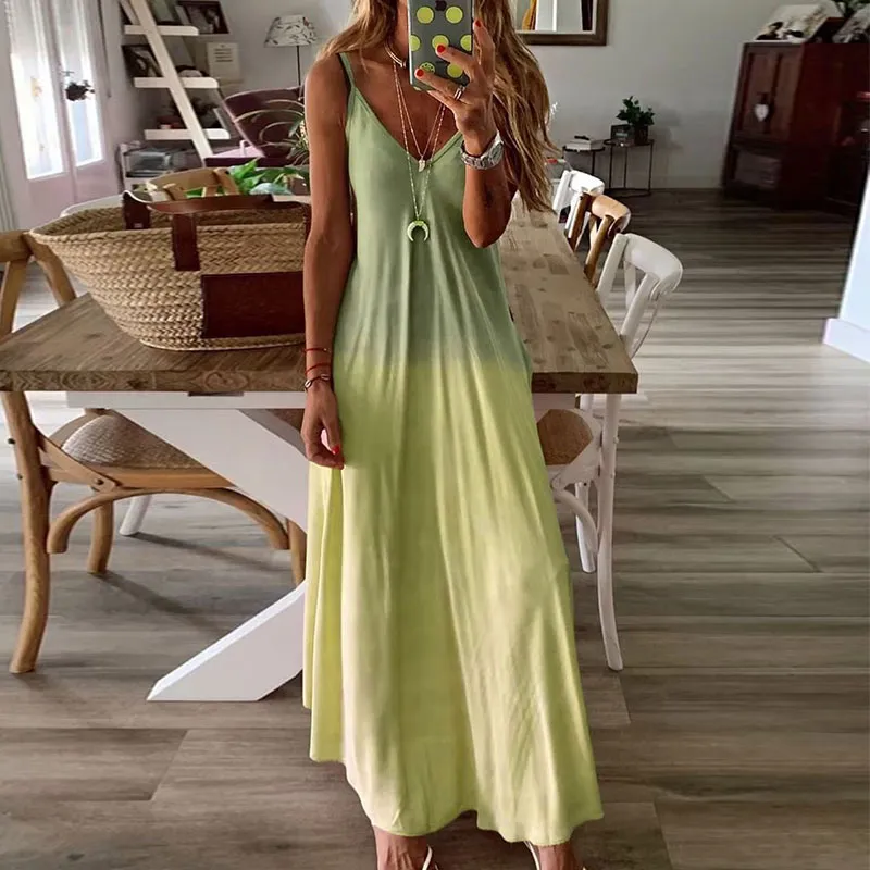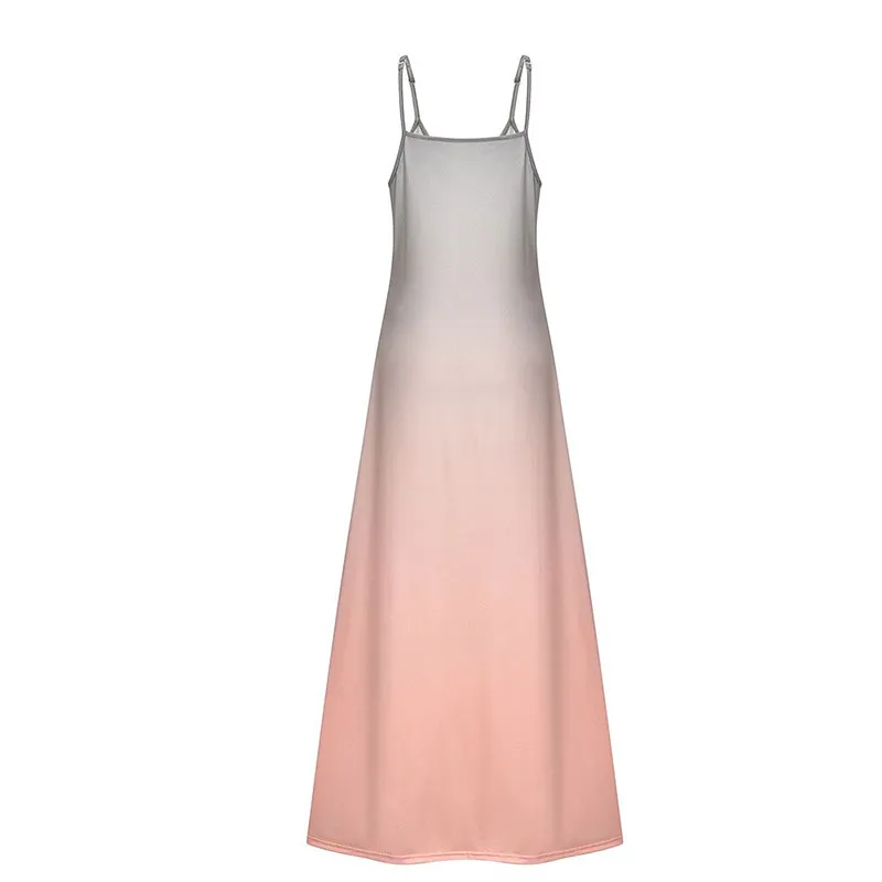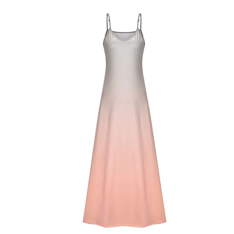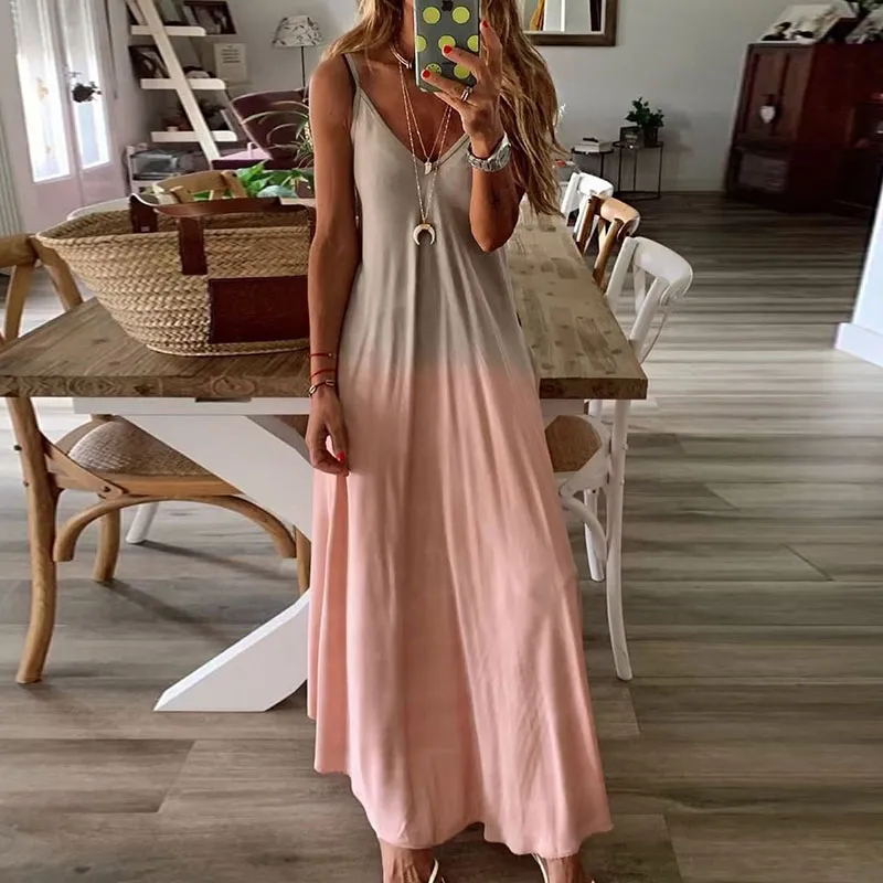 Wholesale فستان ماكسي كاجوال بدون أكمام بفتحة رقبة على شكل حرف V بألوان متدرجة مقاس s-5xl