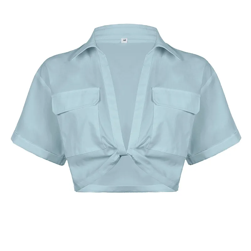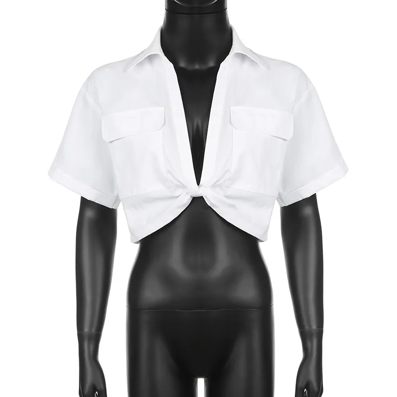 Wholesale بلوزة وقميص بولو بأكمام طويلة بلون سادة وقصّة مثيرة للنساء