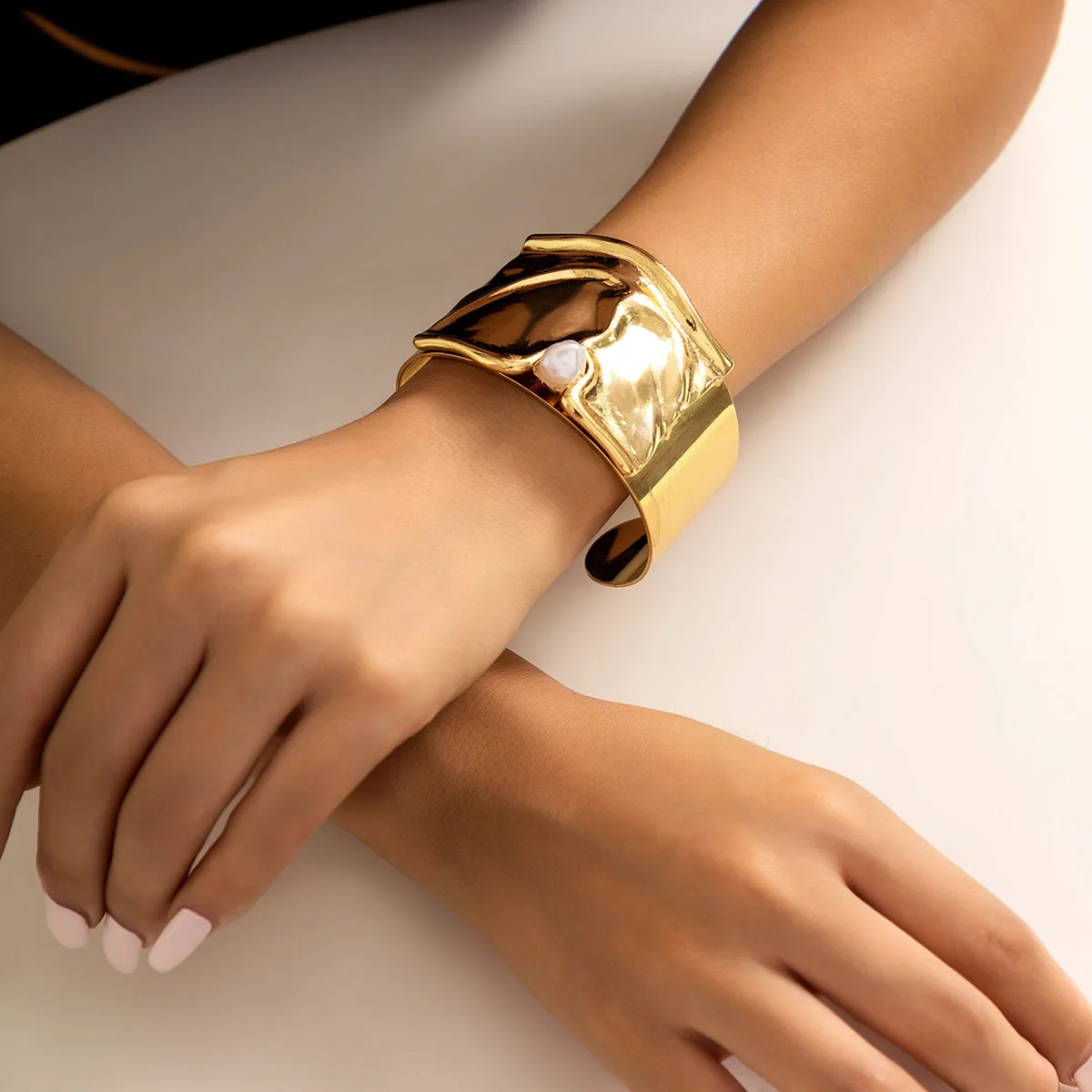 Wholesale سوار عريض من اللؤلؤ الصناعي المعدني