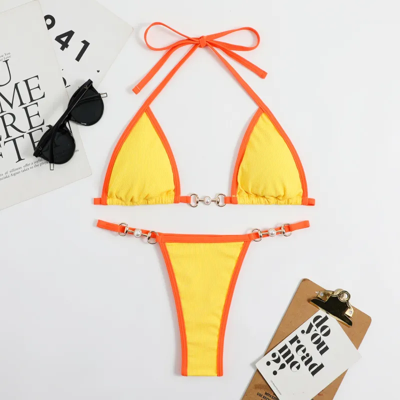 Wholesale ملابس سباحة صيفية مثيرة بلون سادة معدني بكيني طقم بيكيني نسائي