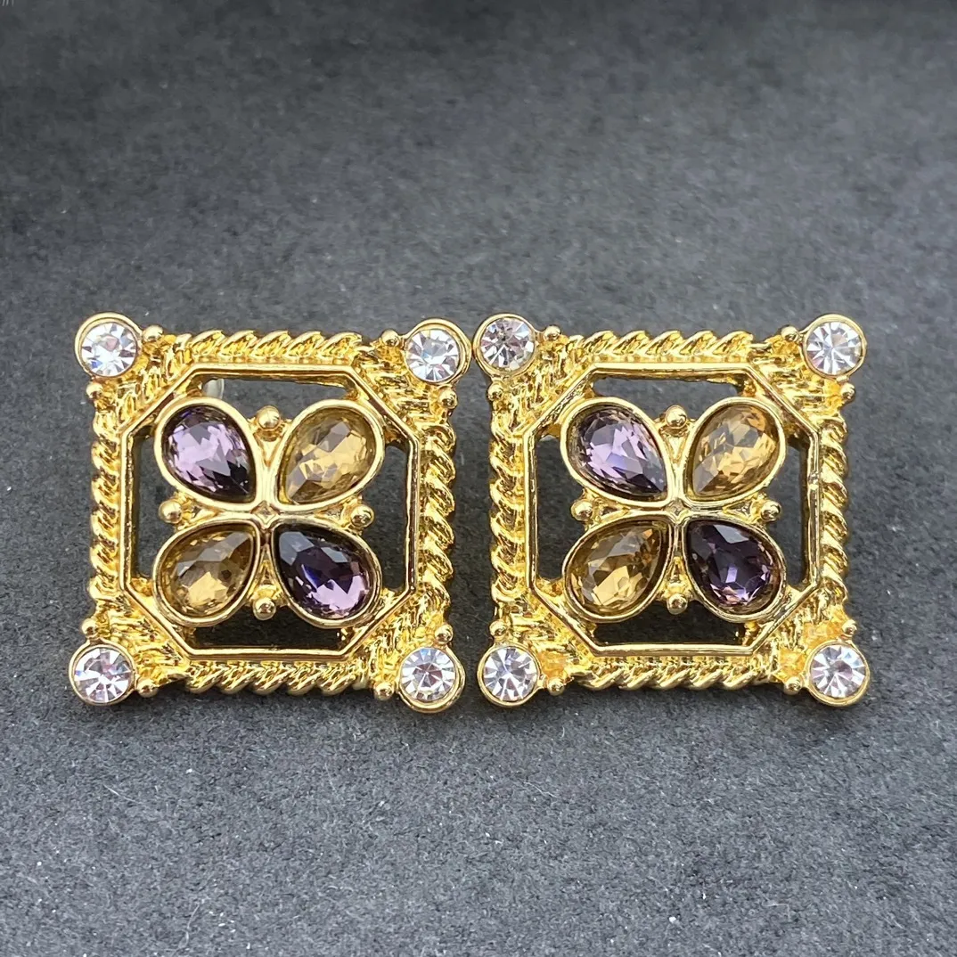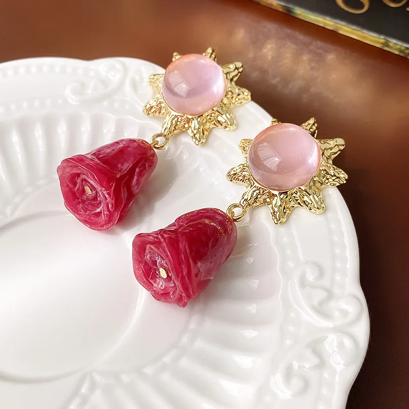 Wholesale أقراط نسائية أنيقة على شكل قطرة زيت توليب عتيقة على شكل زهرة الراين