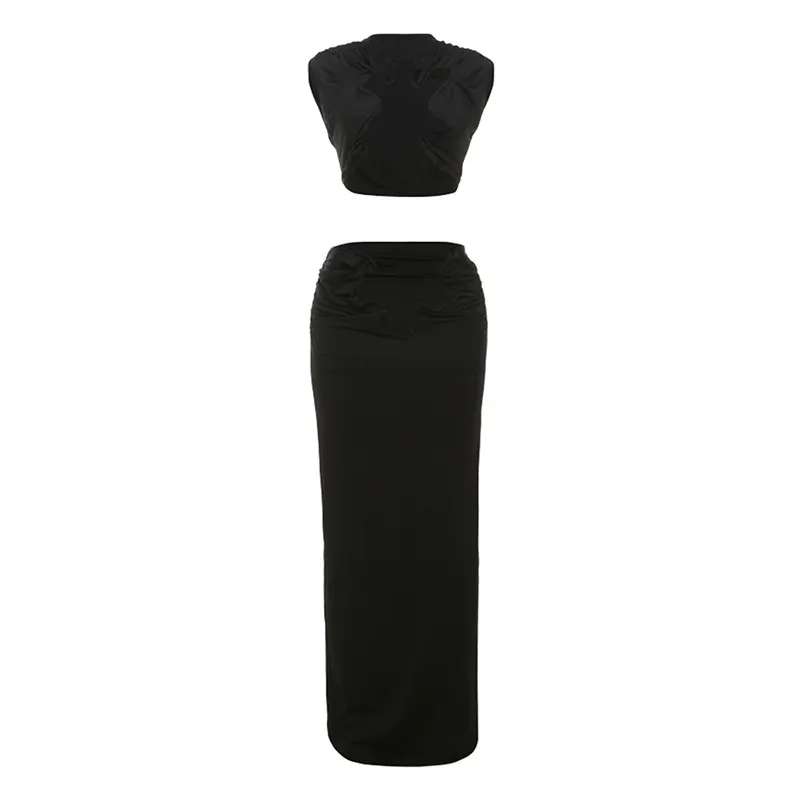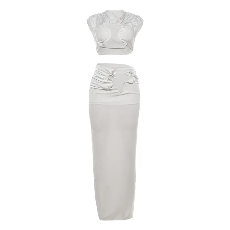 Wholesale طقم مكون من قطعتين من تنورة مقسمة من أعلى وأسفل مجوفة من الدانتيل ثلاثي الأبعاد مثير للنساء في الصيف