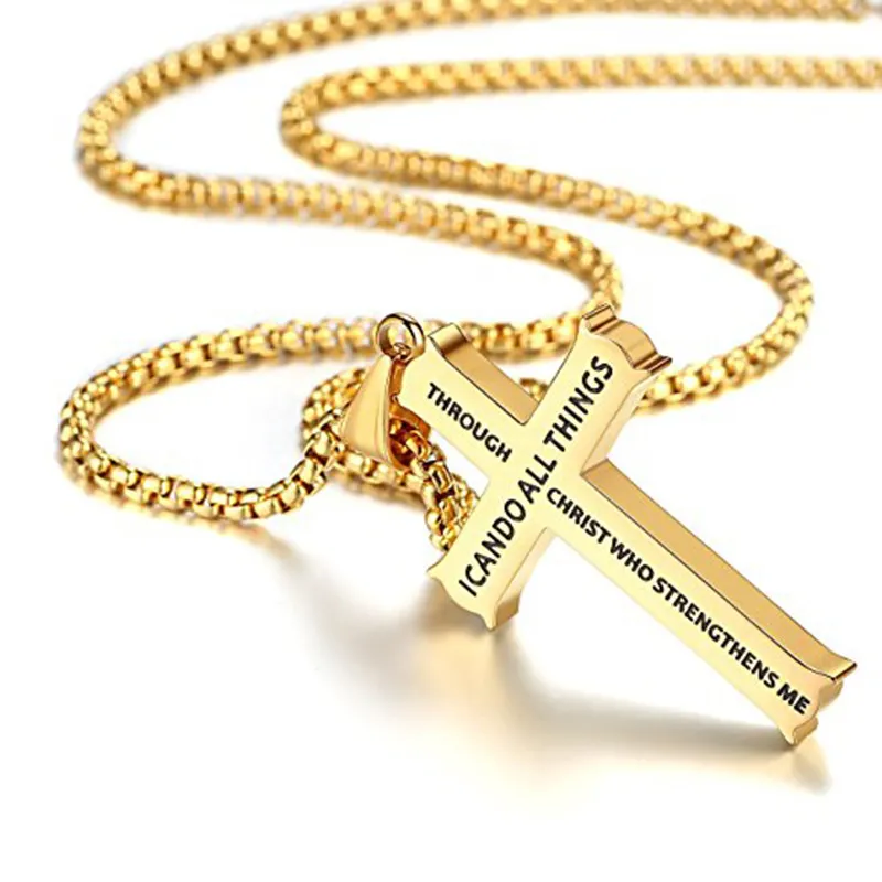 Wholesale قلادة رجالي كاجوال عصرية من الفولاذ المقاوم للصدأ عليها أحرف متقاطعة