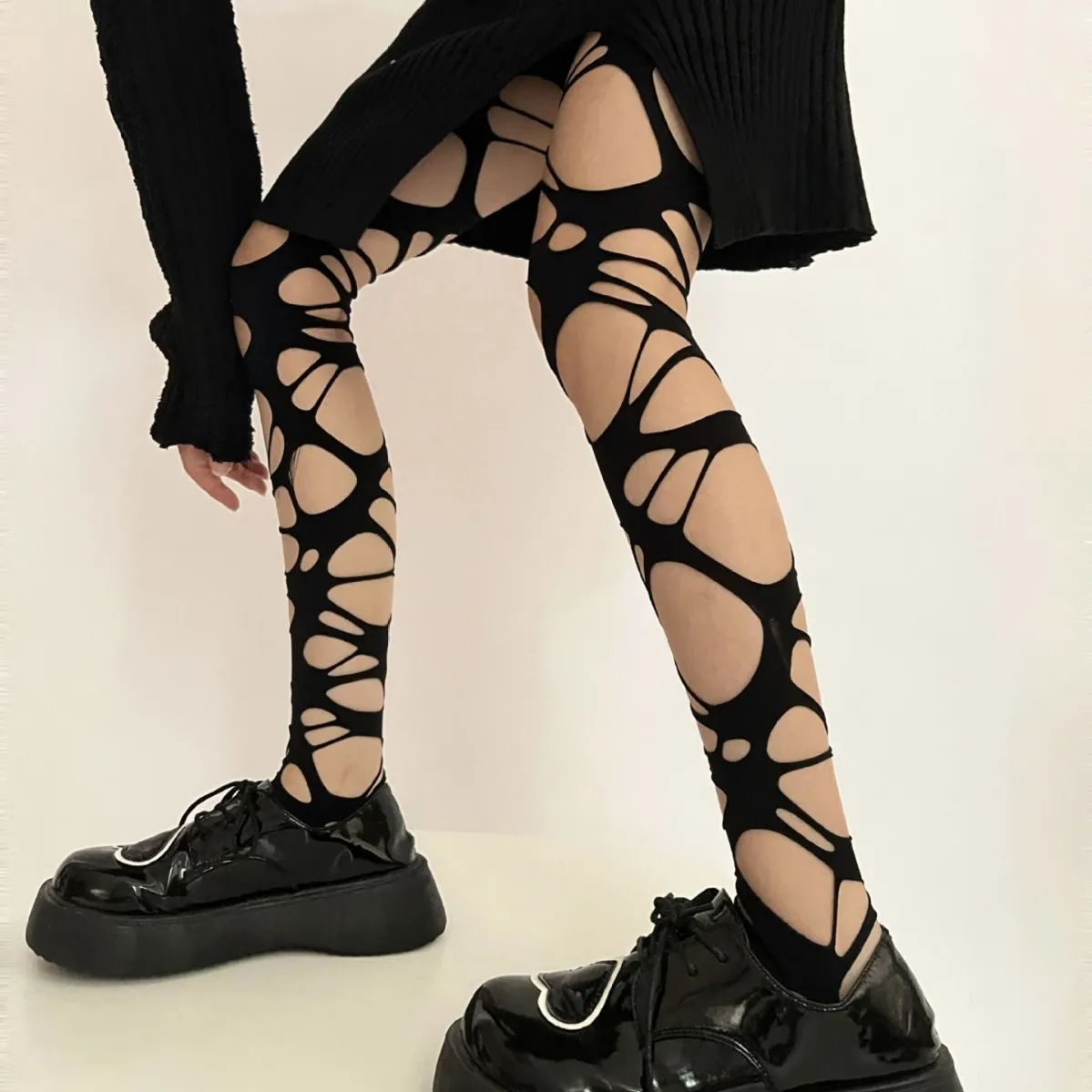 Wholesale جوارب طويلة مثيرة سوداء مجوفة غير منتظمة للنساء على الطراز القوطي