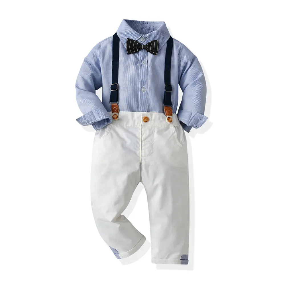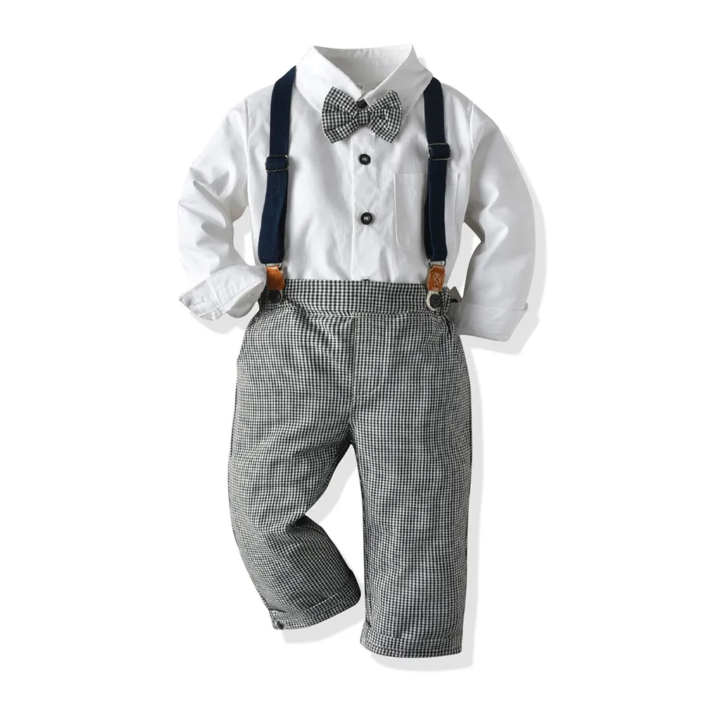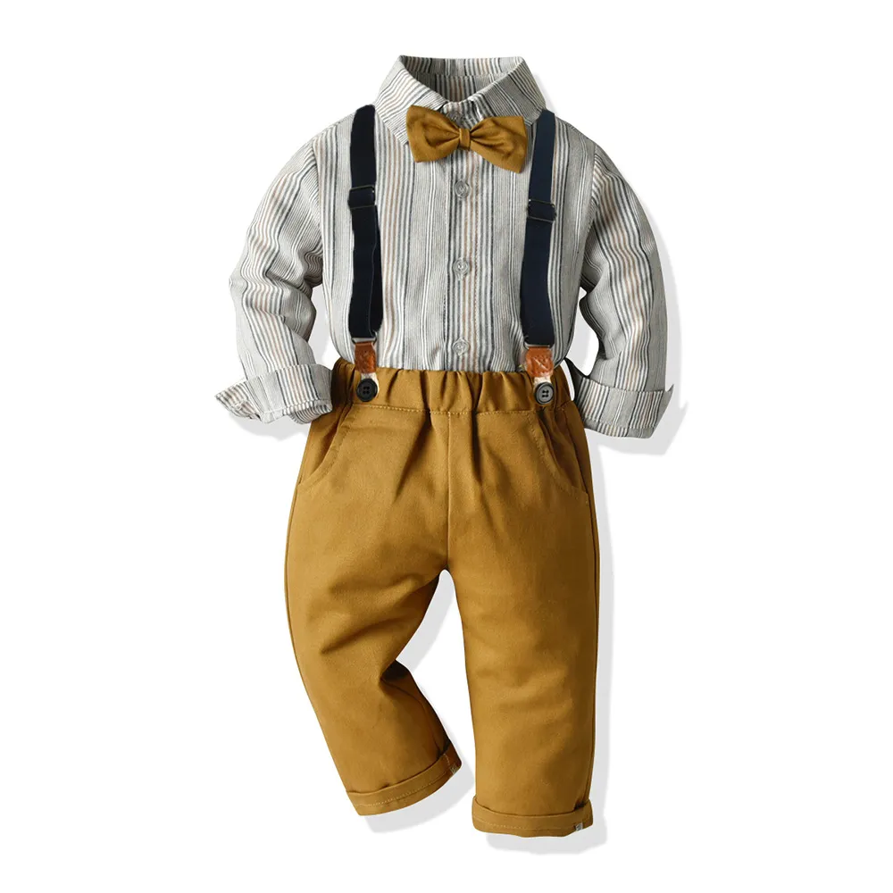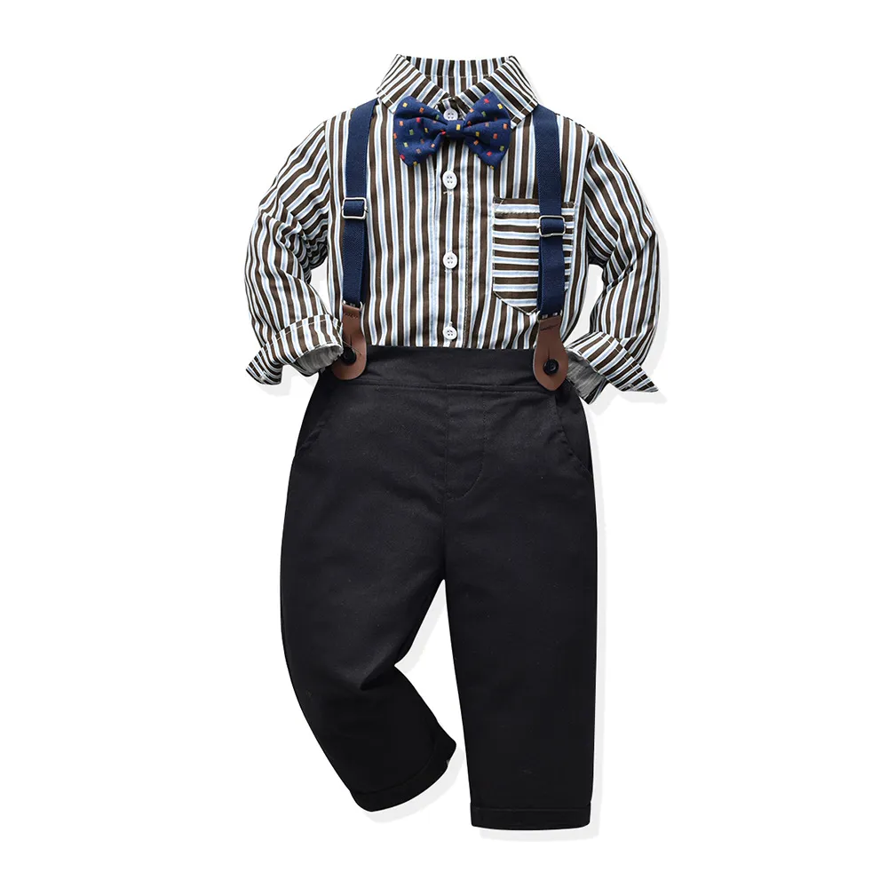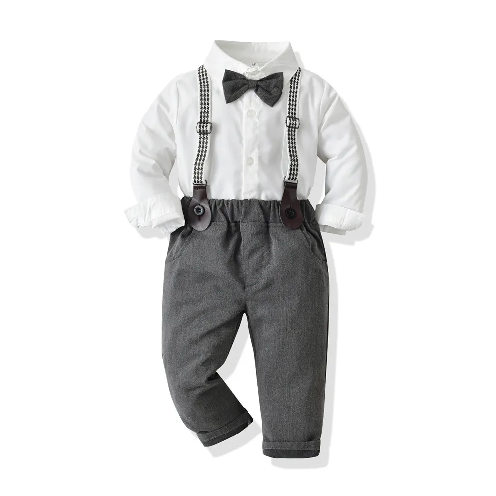 Wholesale طقم قميص طويل الأكمام وبنطلون وحمالة صدر للأطفال الصغار والأولاد على الطراز البريطاني للحفلات غير الرسمية