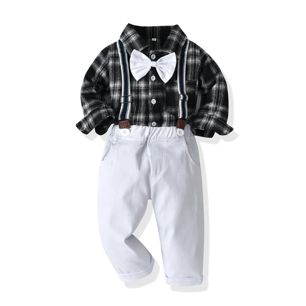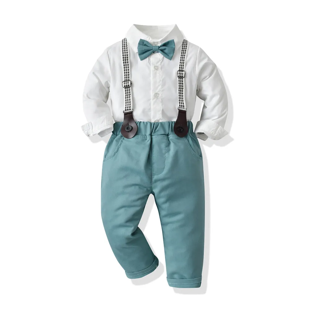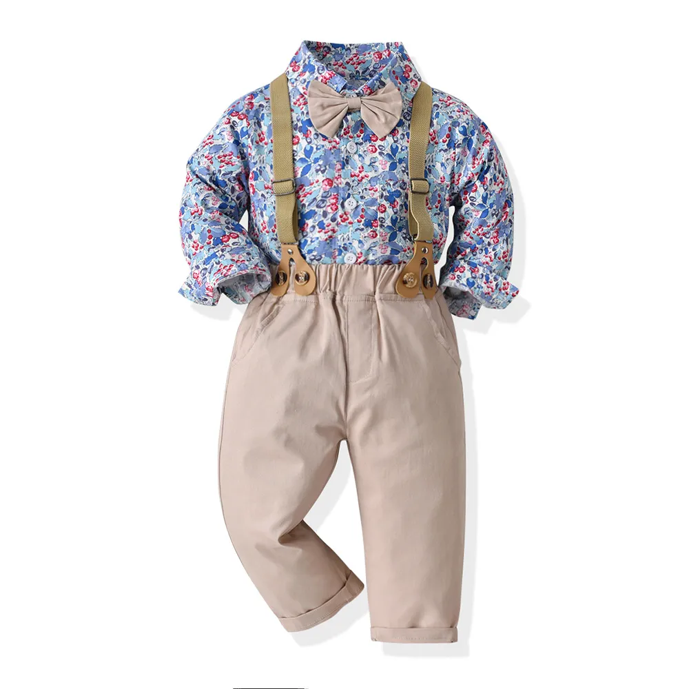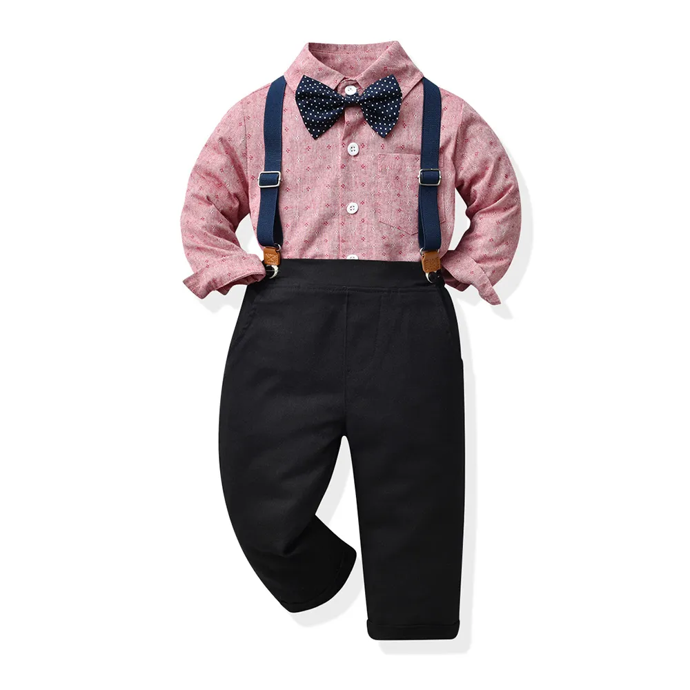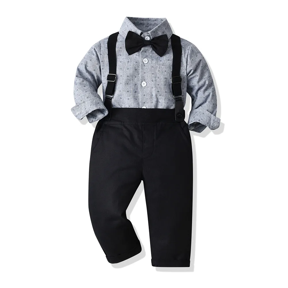 Wholesale طقم قميص طويل الأكمام وبنطلون وحمالة صدر للأطفال الصغار والأولاد على الطراز البريطاني للحفلات غير الرسمية