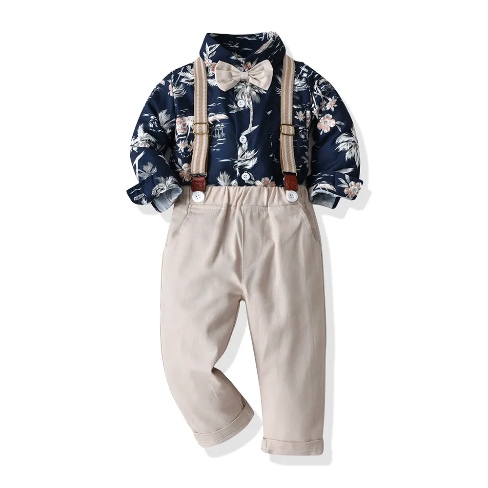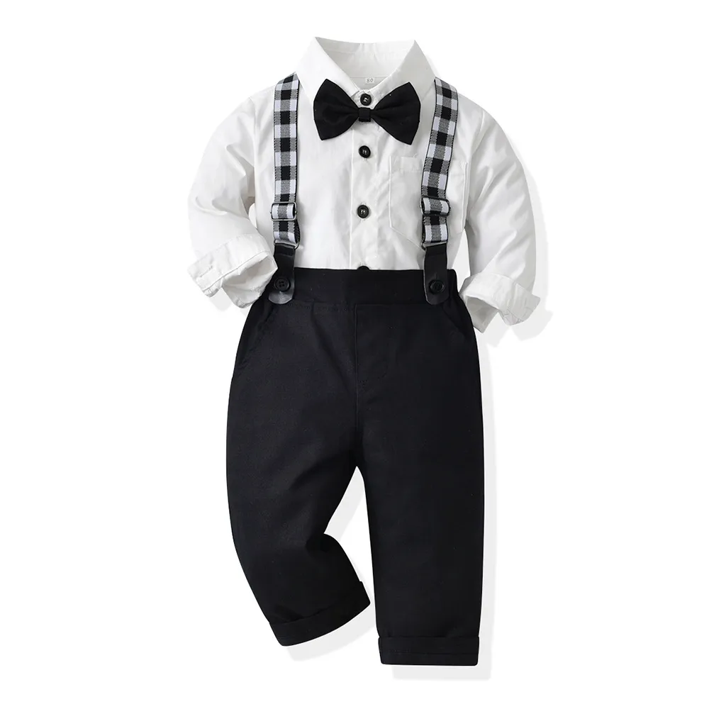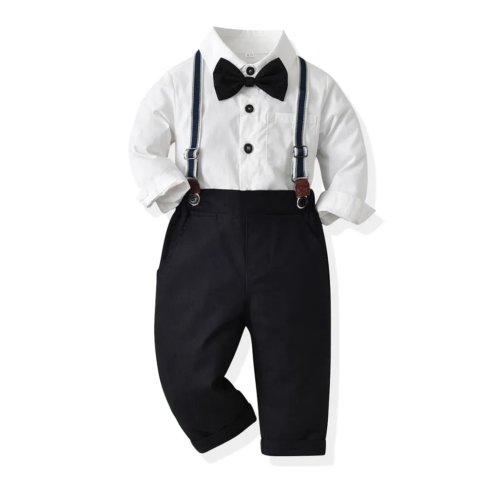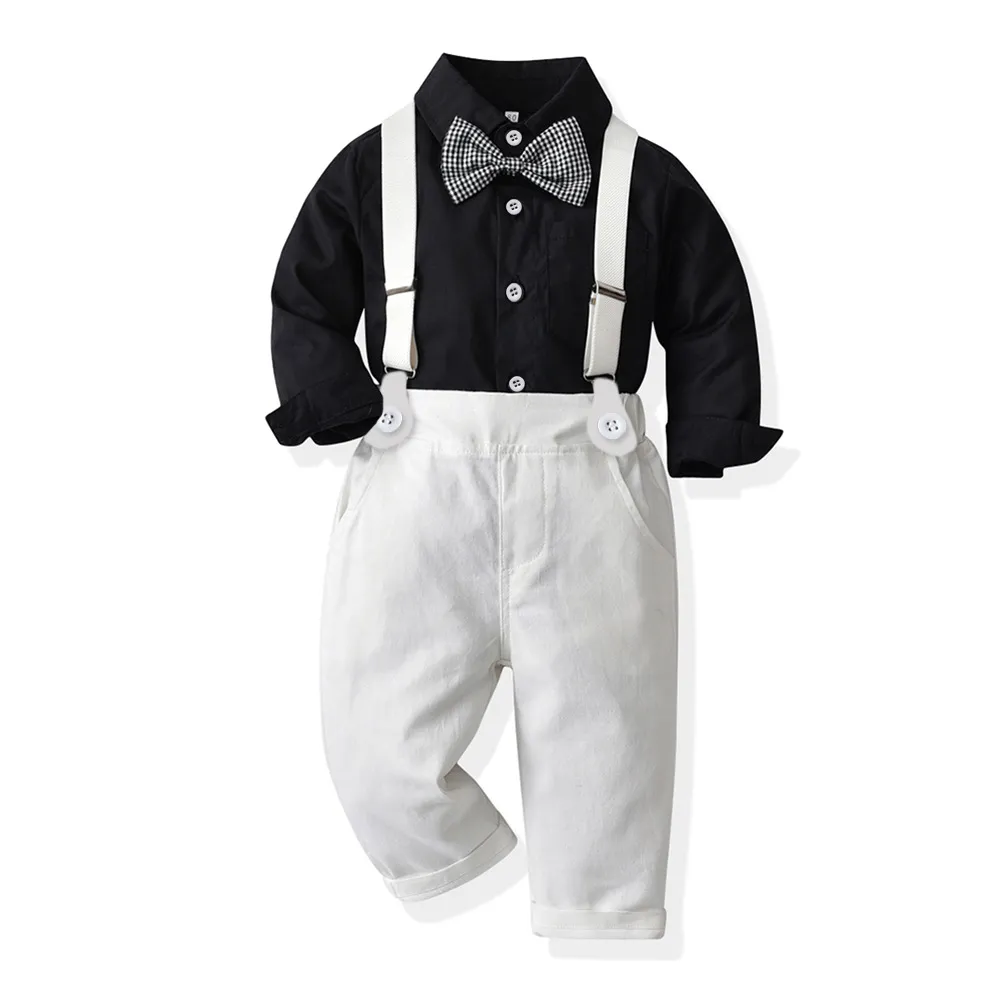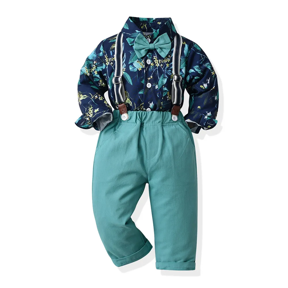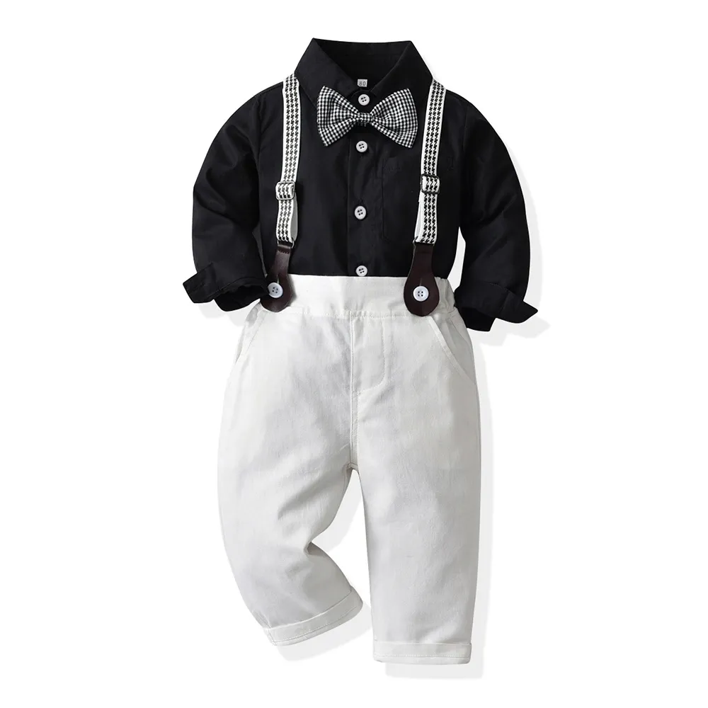 Wholesale طقم قميص طويل الأكمام وبنطلون وحمالة صدر للأطفال الصغار والأولاد على الطراز البريطاني للحفلات غير الرسمية