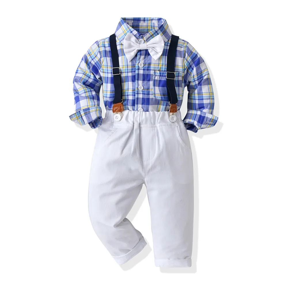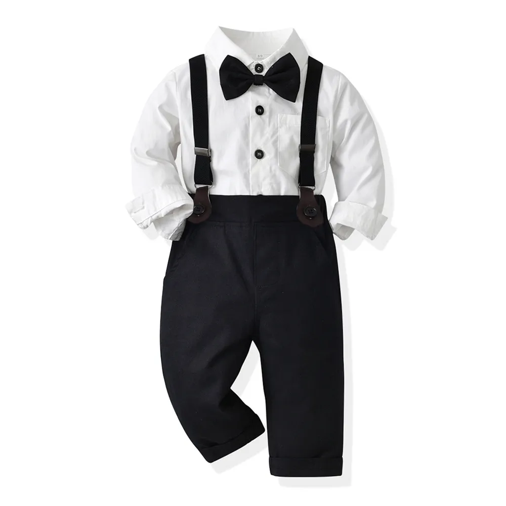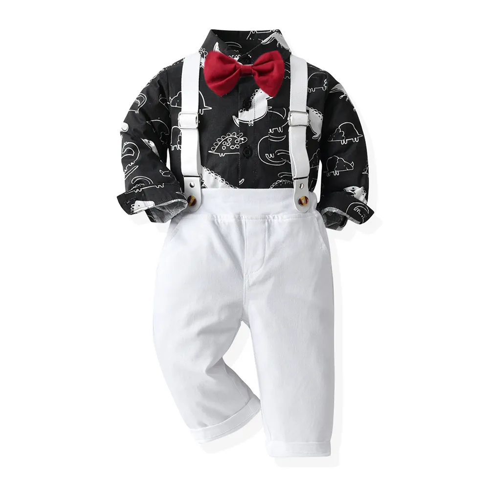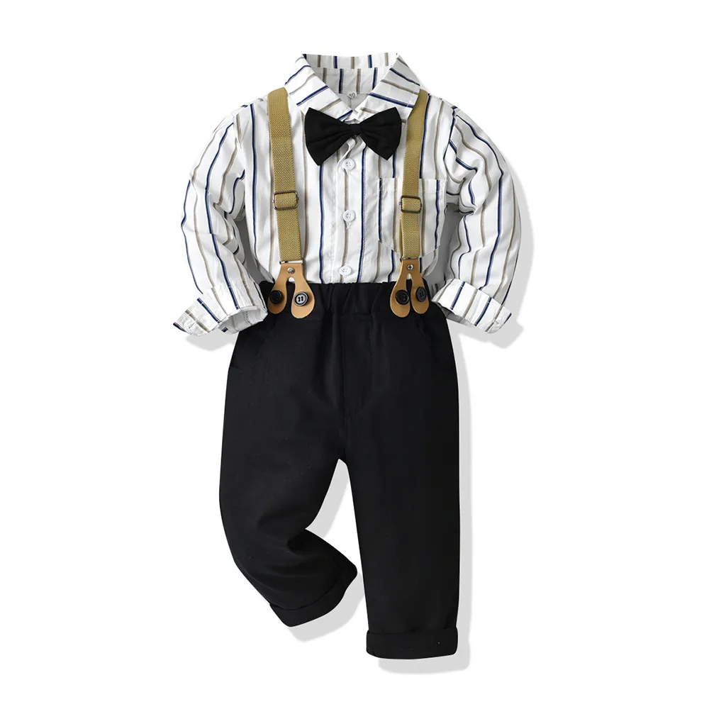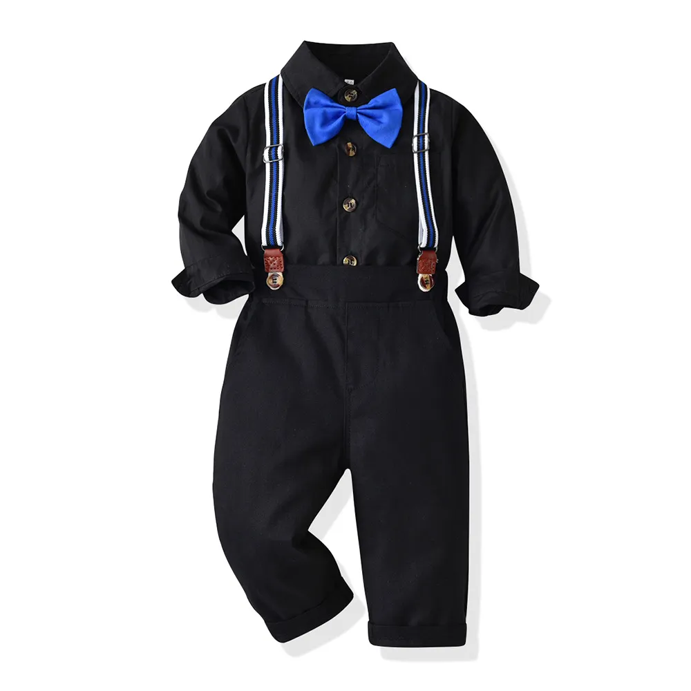 Wholesale طقم قميص طويل الأكمام وبنطلون وحمالة صدر للأطفال الصغار والأولاد على الطراز البريطاني للحفلات غير الرسمية