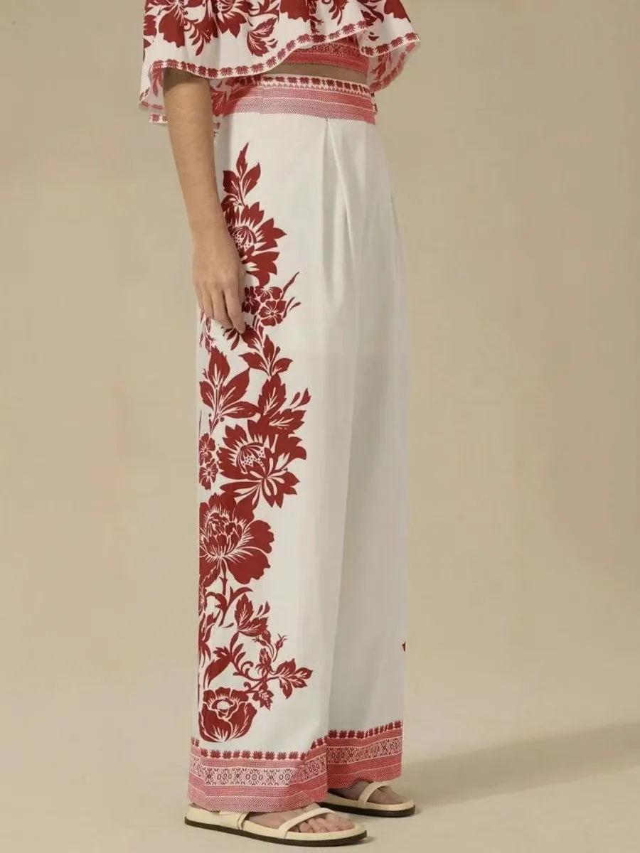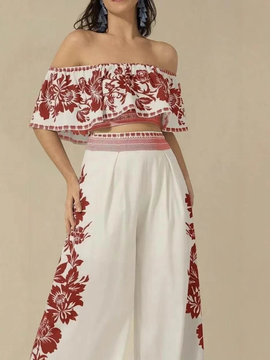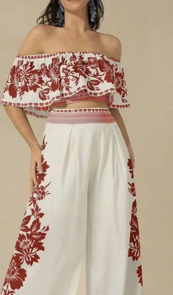 Wholesale طقم مكون من قطعتين من بلوزة مكشوفة الظهر بأكمام طويلة ورقبة على شكل حرف V وبنطلون واسع الساق وفضفاض للنساء