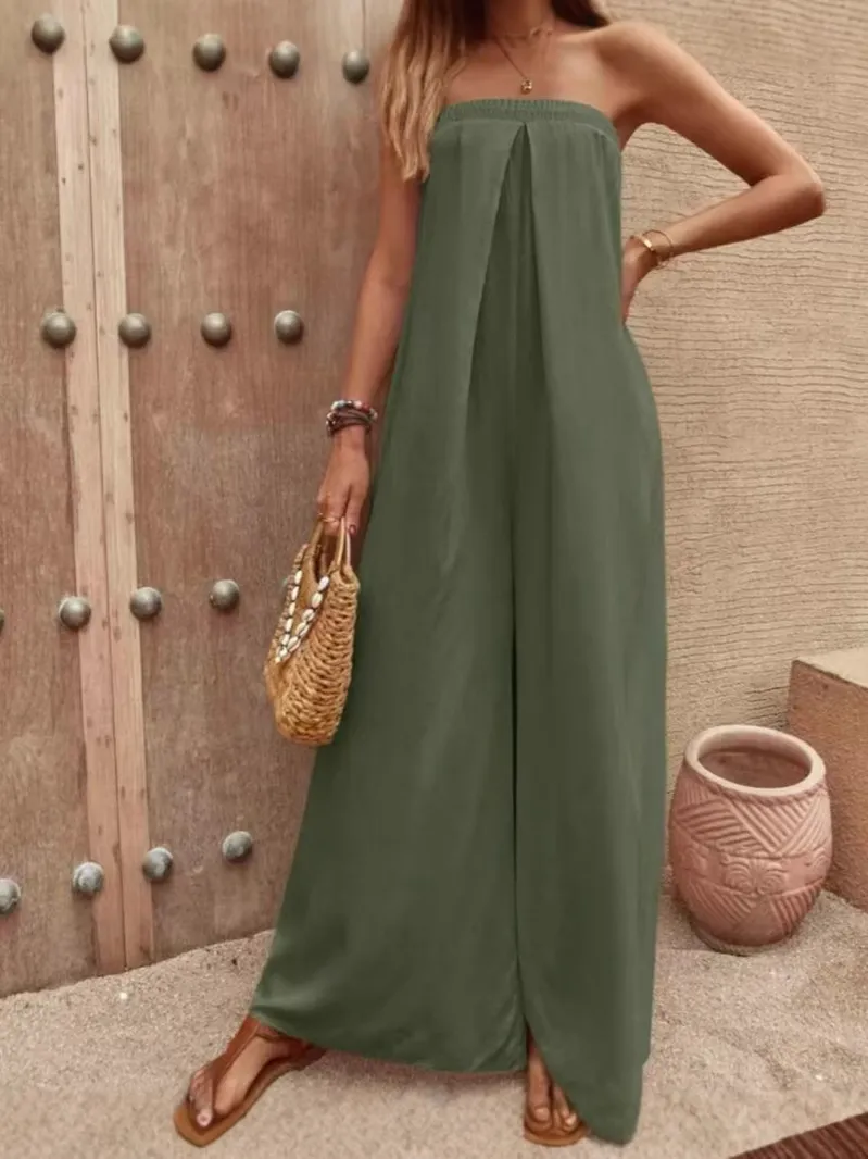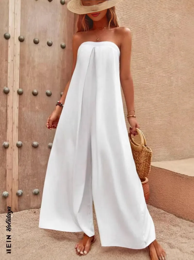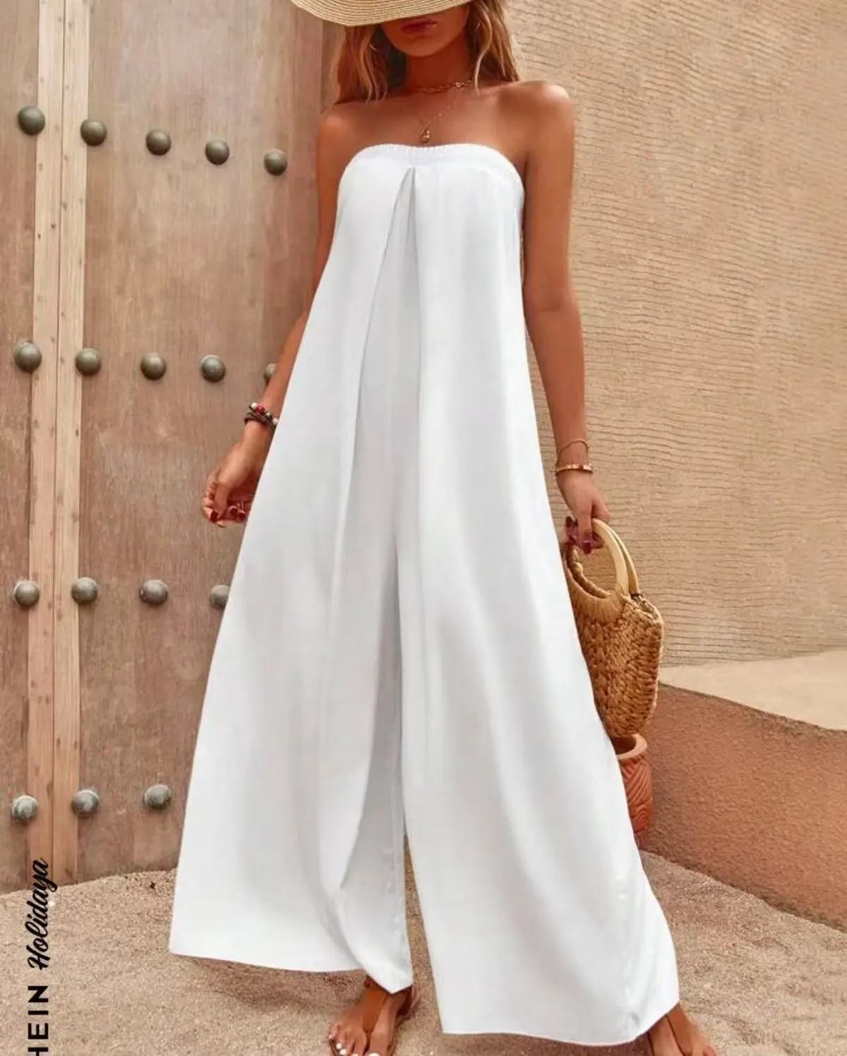 Wholesale جمبسوت فضفاض واسع الساق مكشوف الظهر بلون سادة للنساء