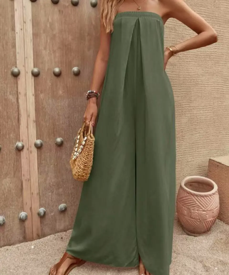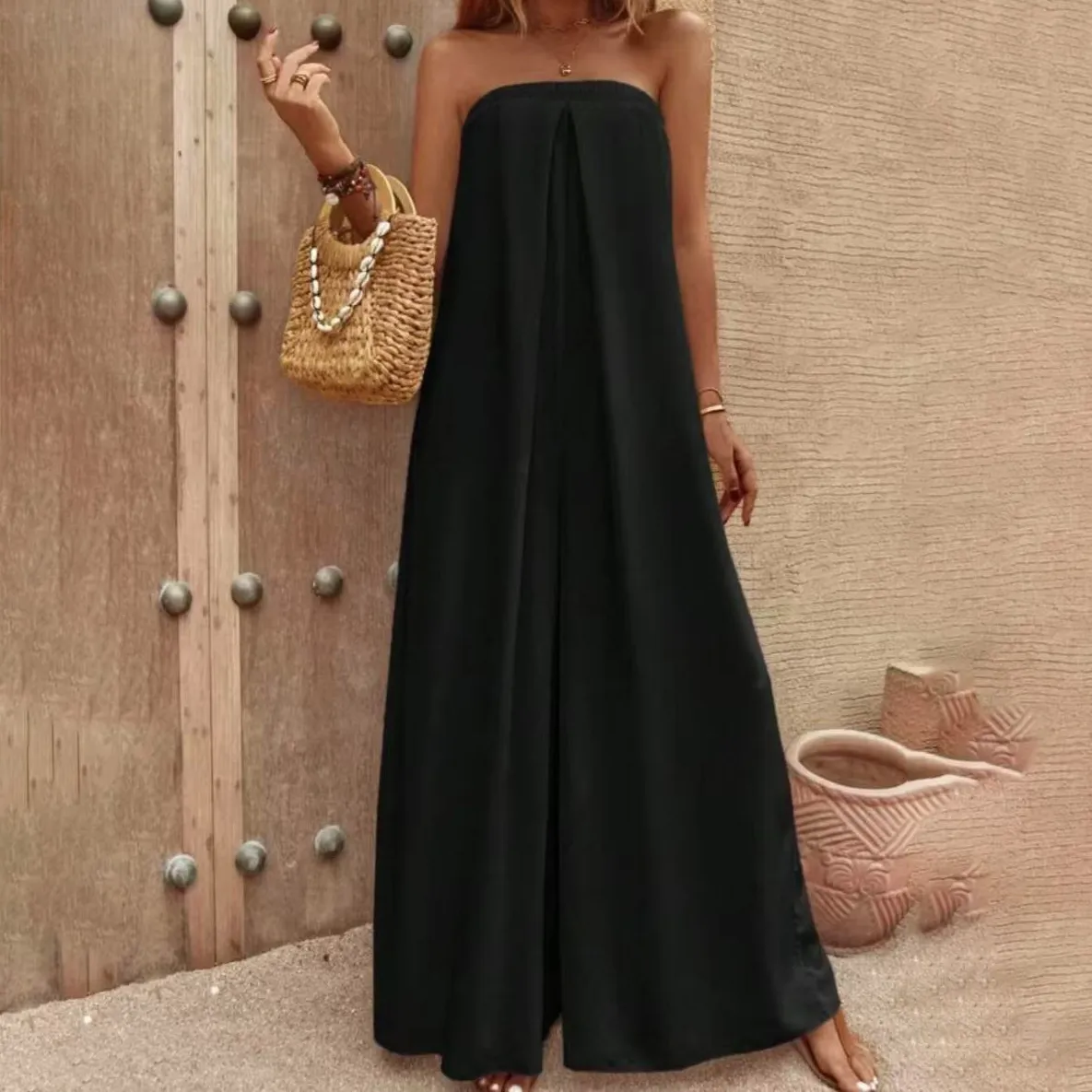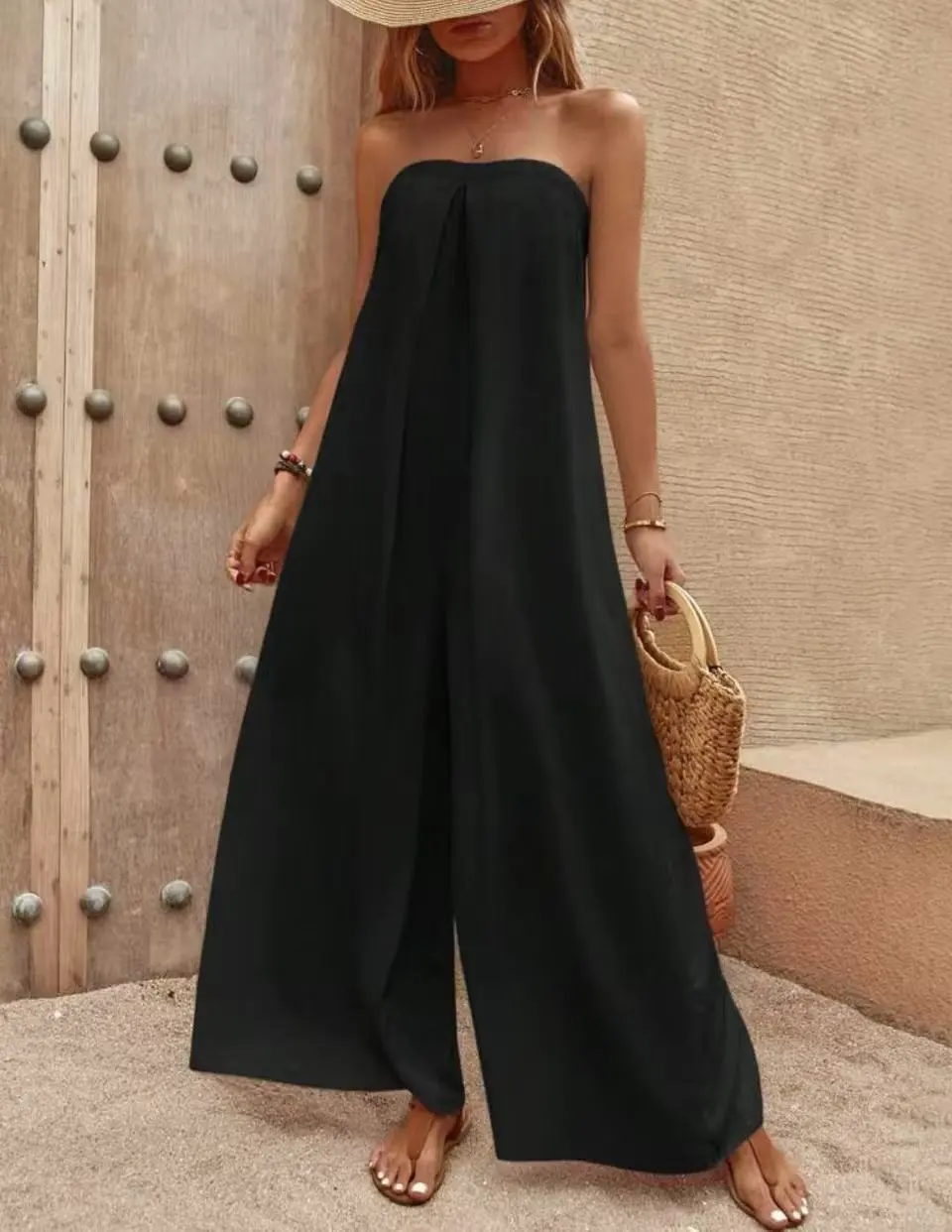Wholesale جمبسوت فضفاض واسع الساق مكشوف الظهر بلون سادة للنساء