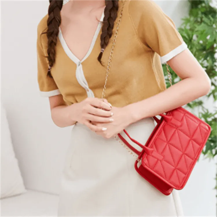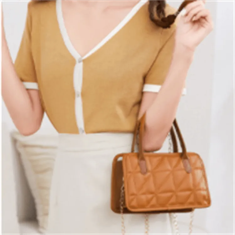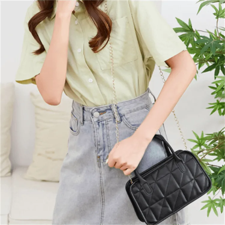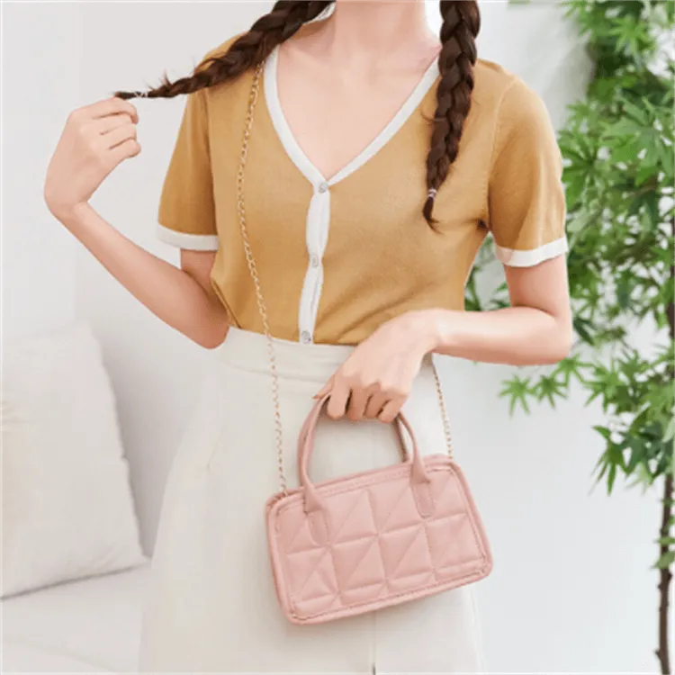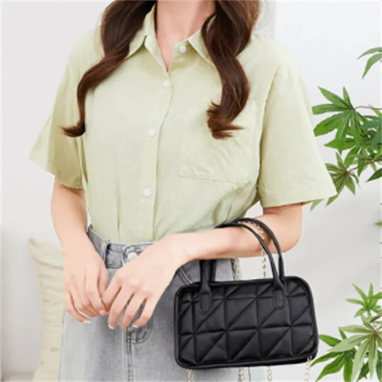 Wholesale حقيبة كروس بودي نسائية أنيقة ذات لون سادة ومقبض من مادة البولي يوريثان بتصميم شبكي ماسي