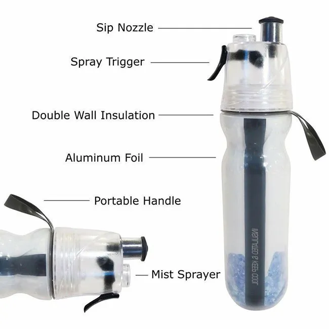Wholesale Botella de agua plástica del espray de la función de conservación en frío de los deportes al aire libre