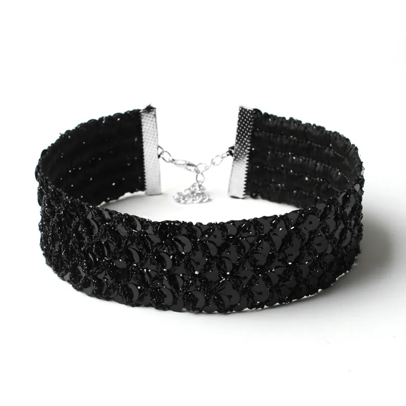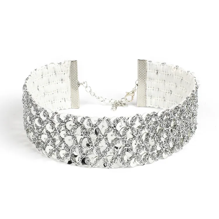 Wholesale Gargantilla ancha de franela con decoración de lentejuelas hecha a mano simple