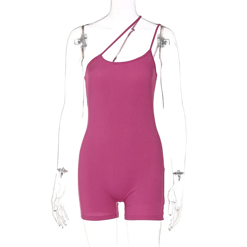 Wholesale S-L Mamelucos básicos sin espalda con hombros oblicuos de color sólido y creativos de verano vanguardistas para mujer