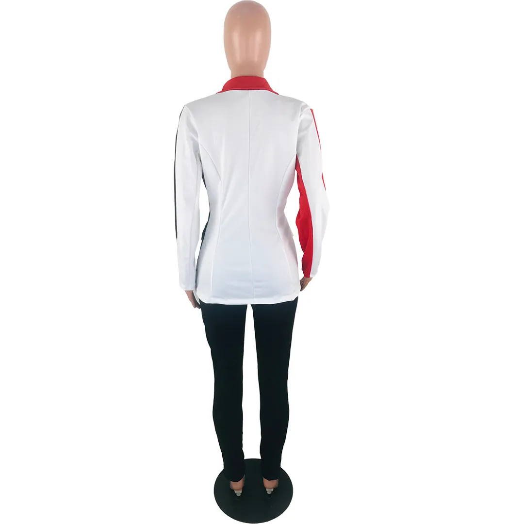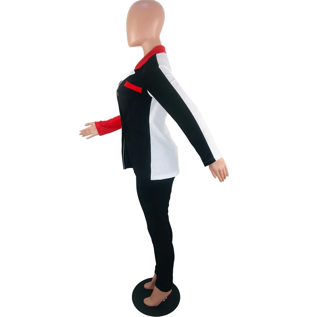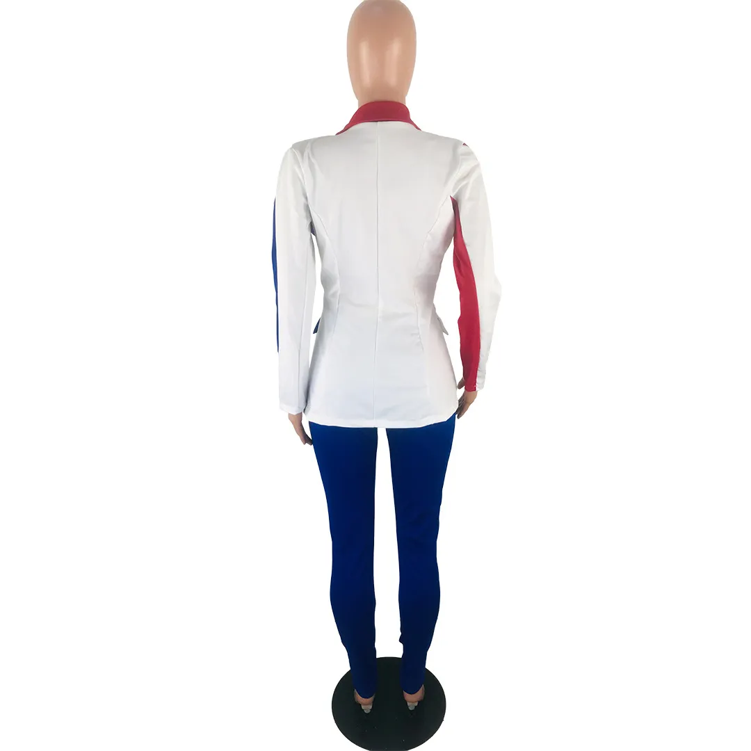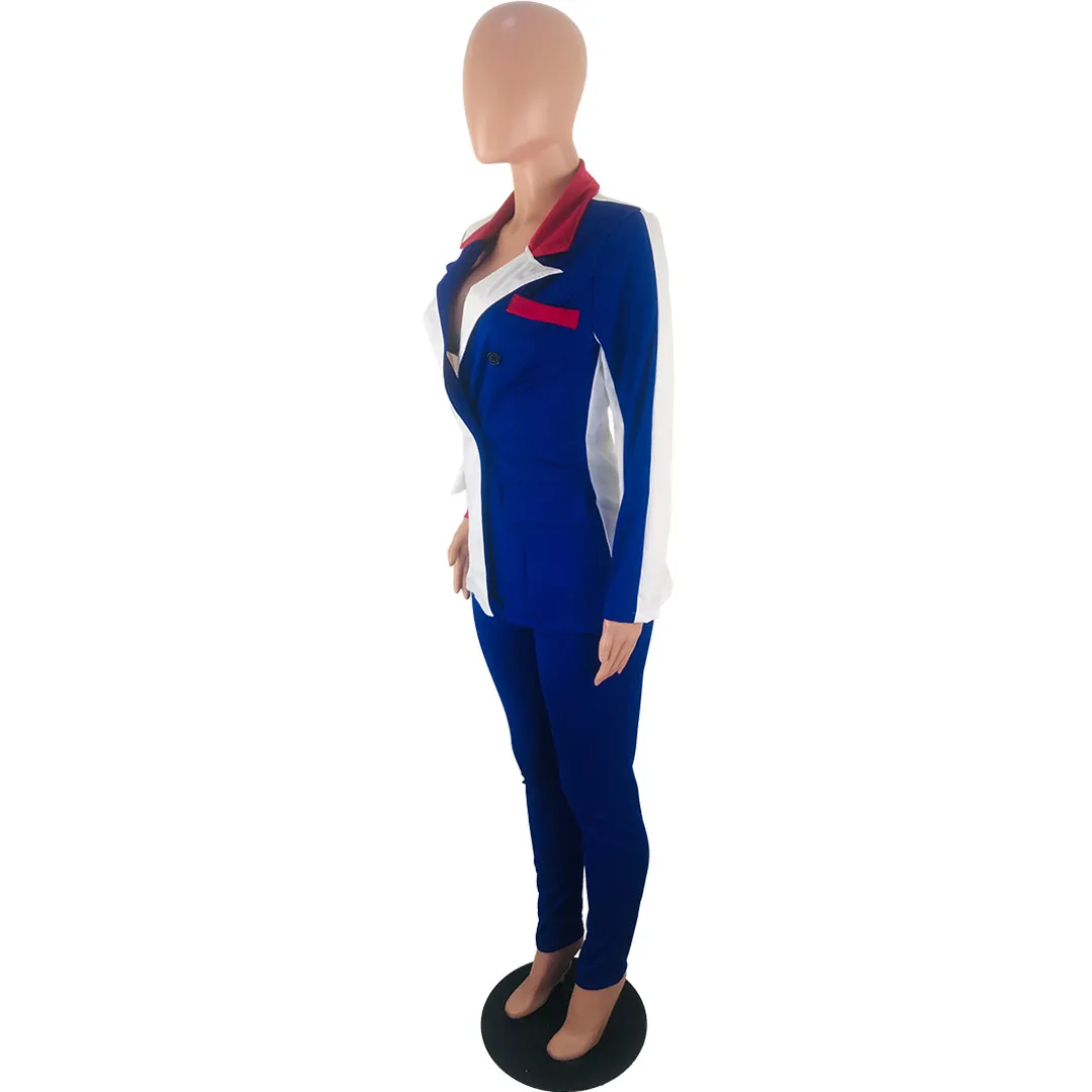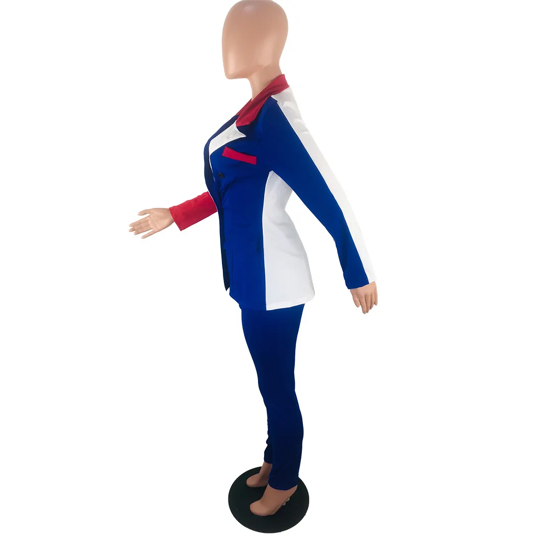 Wholesale S-3XL 2 pcs/set Women Lapel Patchwork Long-sleeve Coat And Slim Pants