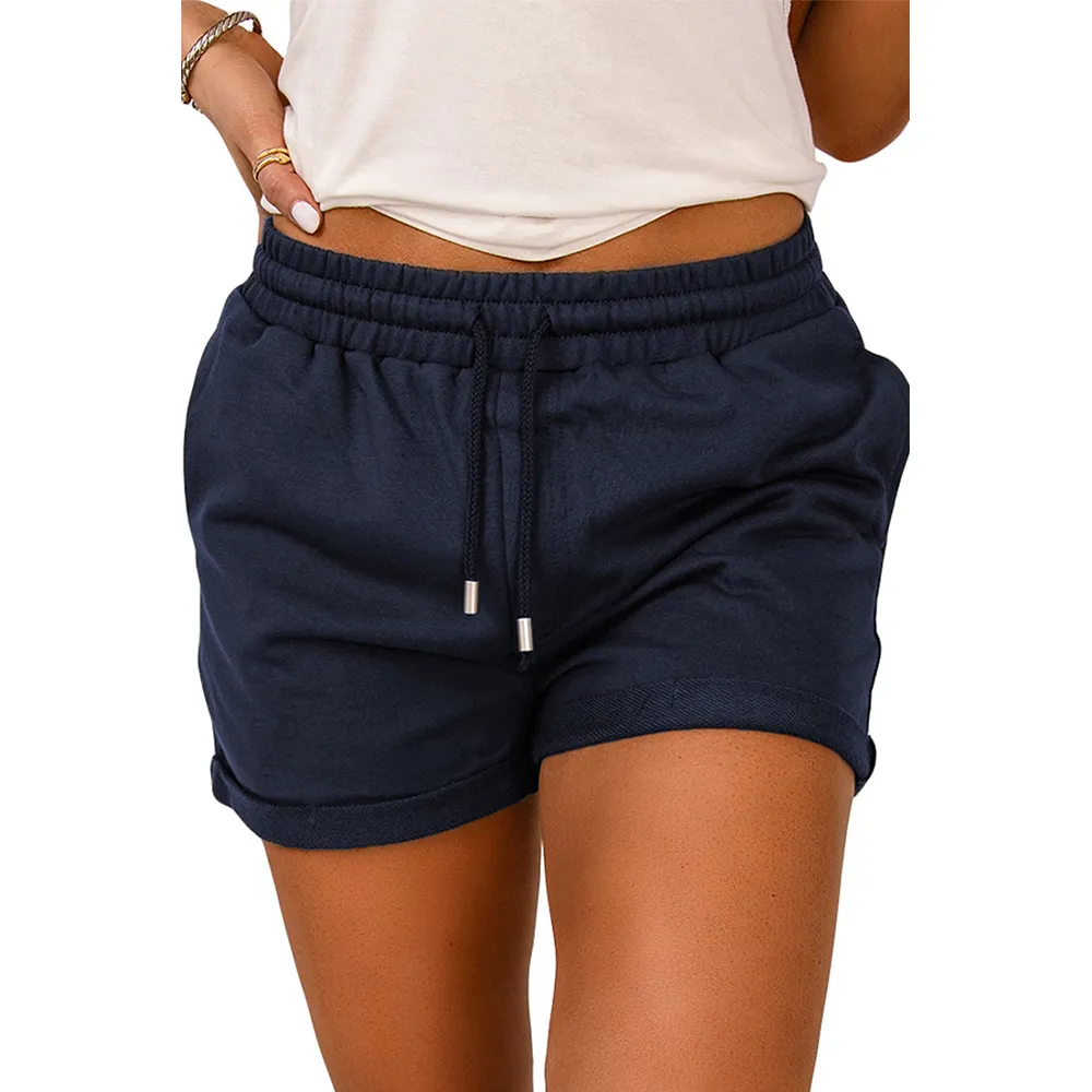 Wholesale Pantalones cortos casuales de color sólido con cintura alta, cinturón elástico y cordón en el dobladillo inferior para mujer