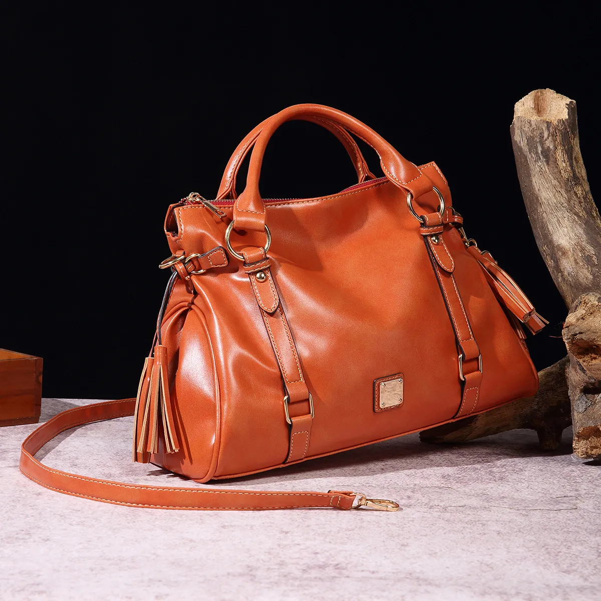 Wholesale Bolso de mano de PU con borlas y cremallera de gran capacidad, de color liso, a la moda para mujer