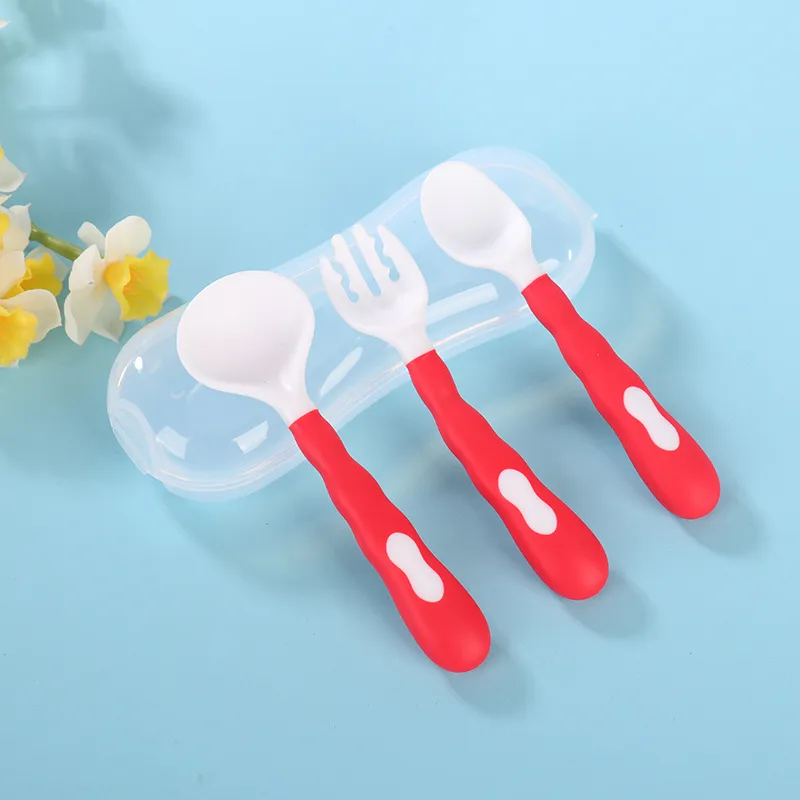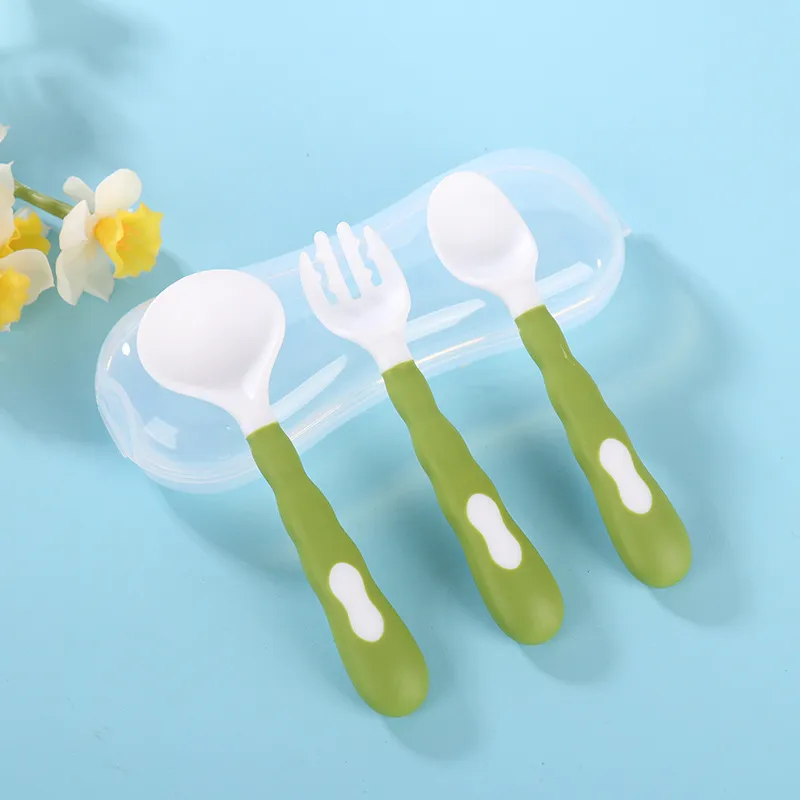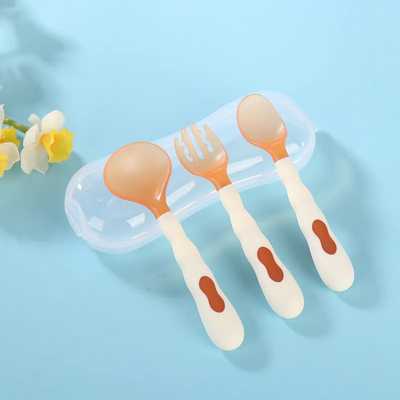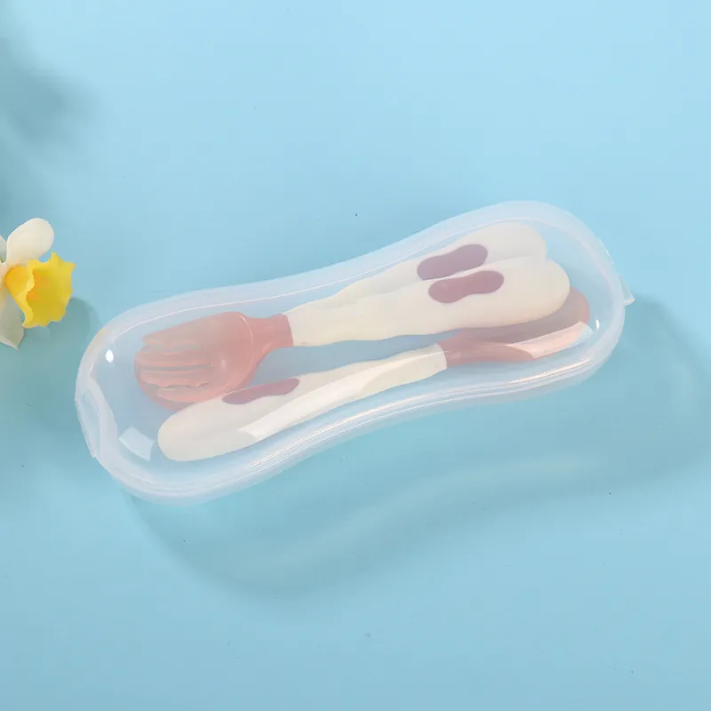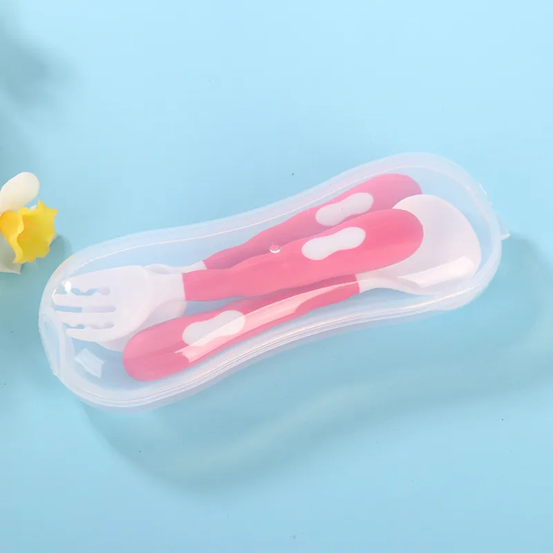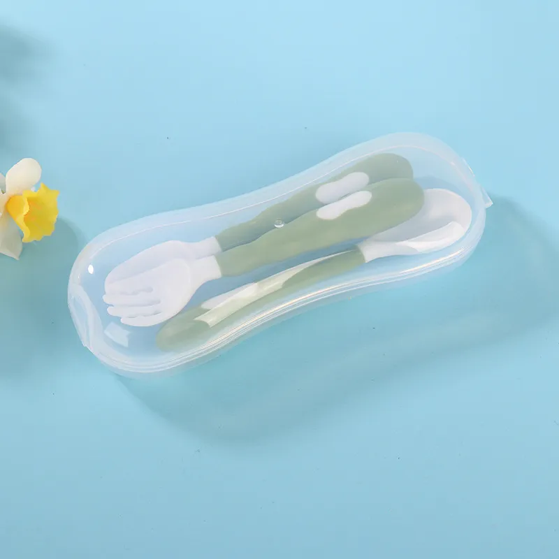 Wholesale Juego de cuchara y tenedor de silicona de color sólido para cuidado del bebé