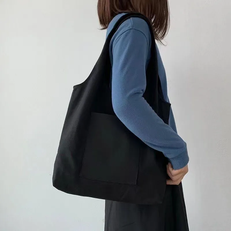 Wholesale Bolso de compras de lona de gran capacidad con bolsillo de color sólido simple para mujer