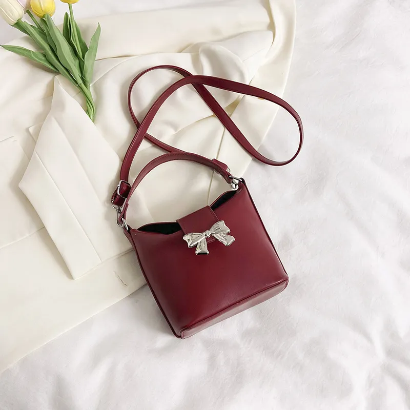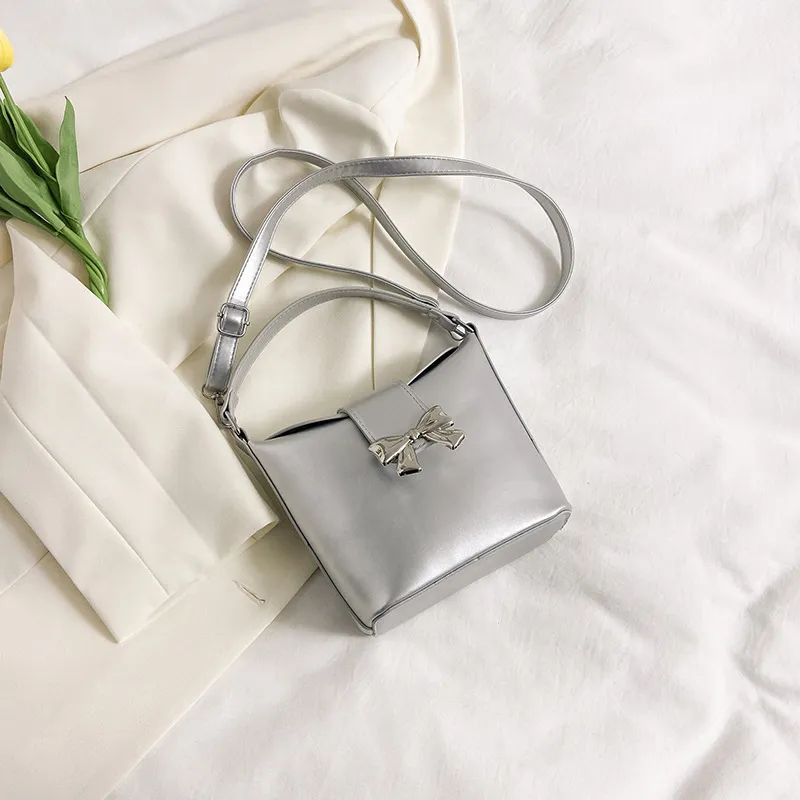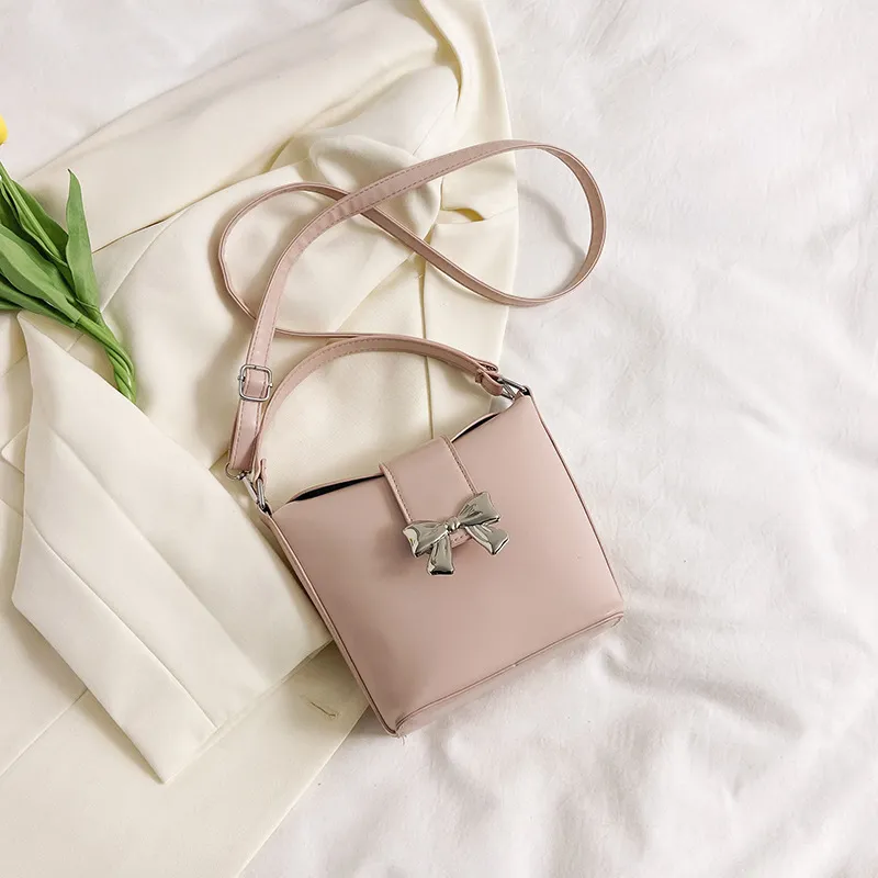 Wholesale Bolso de hombro con asa tipo cubo y lazo de color liso a la moda para mujer