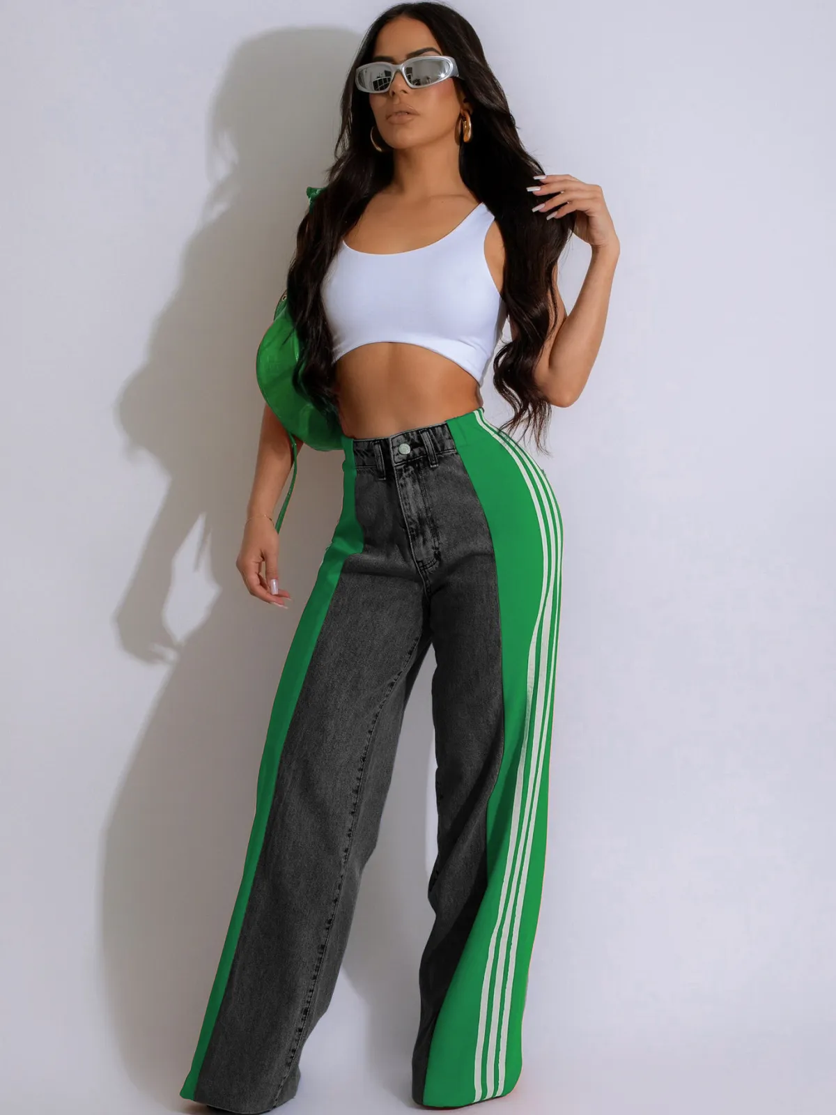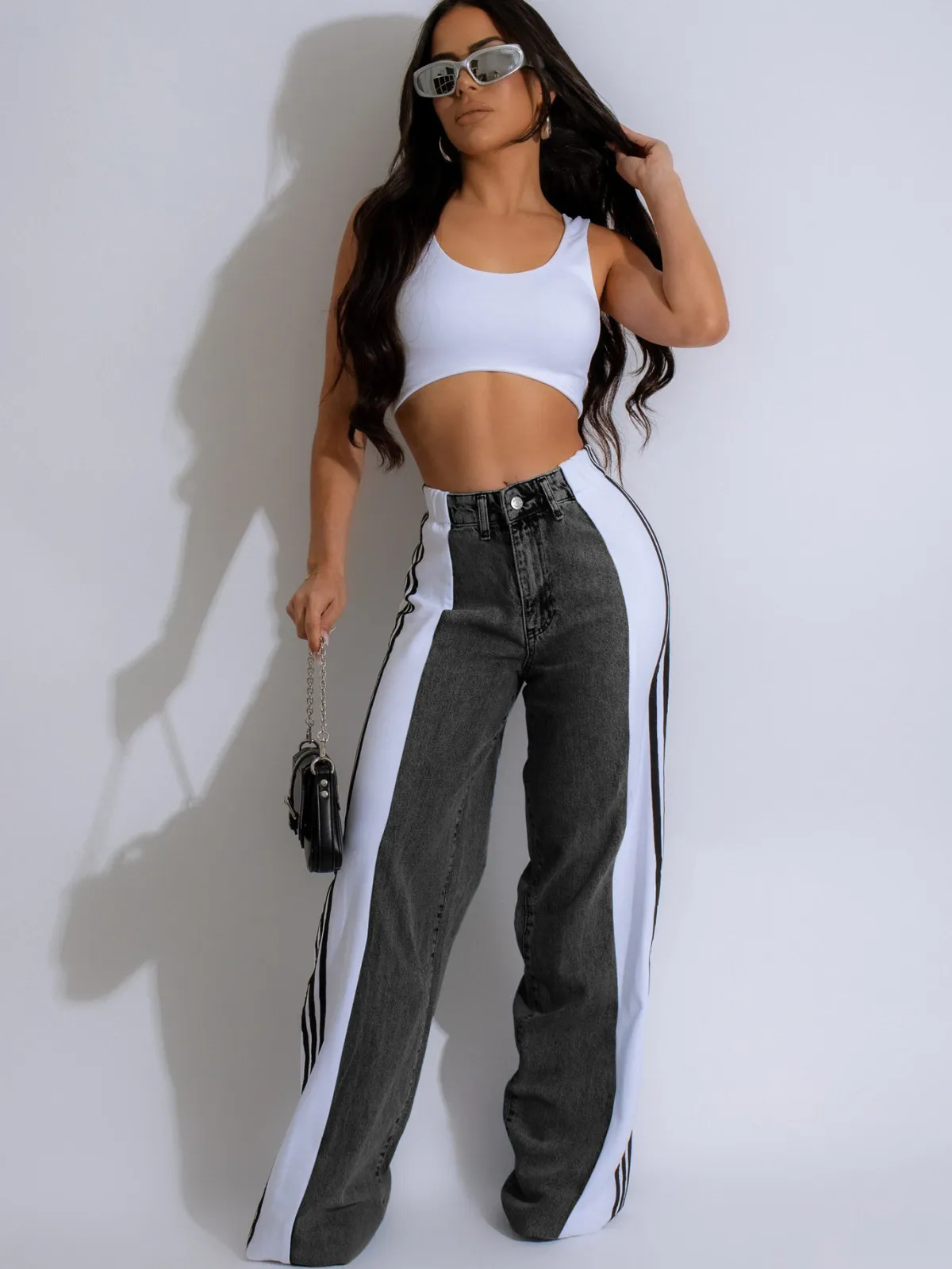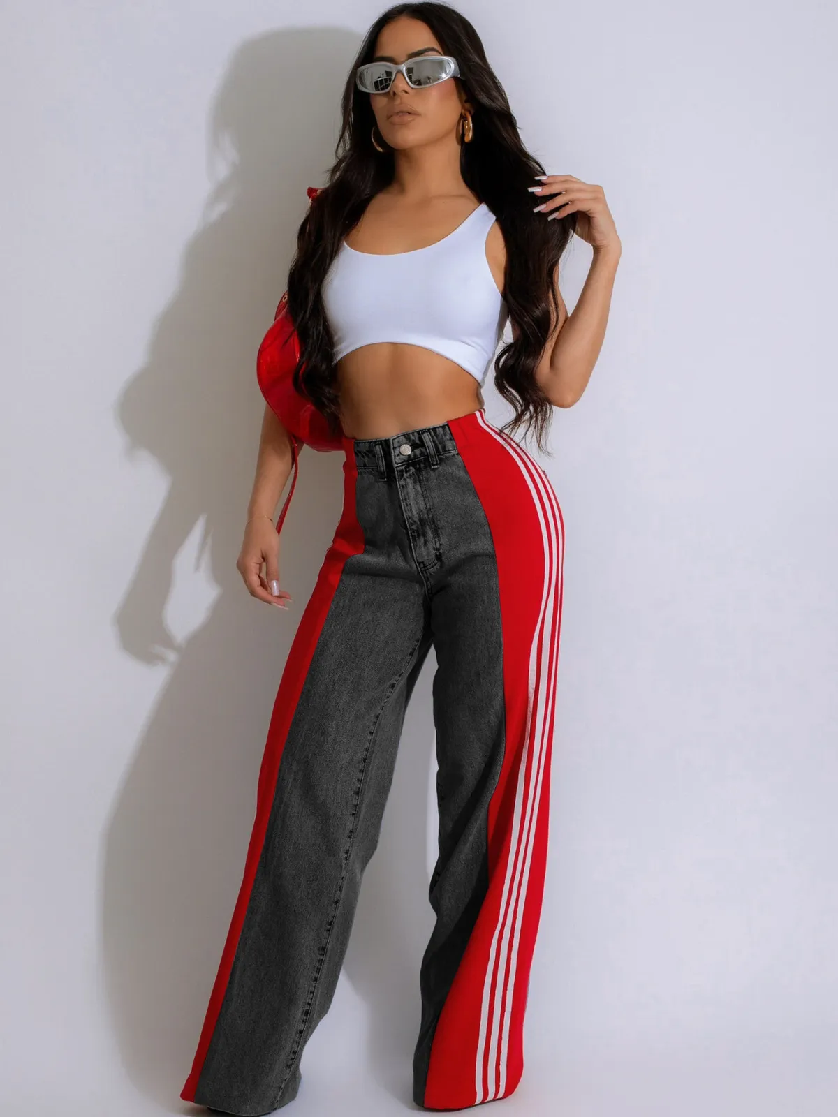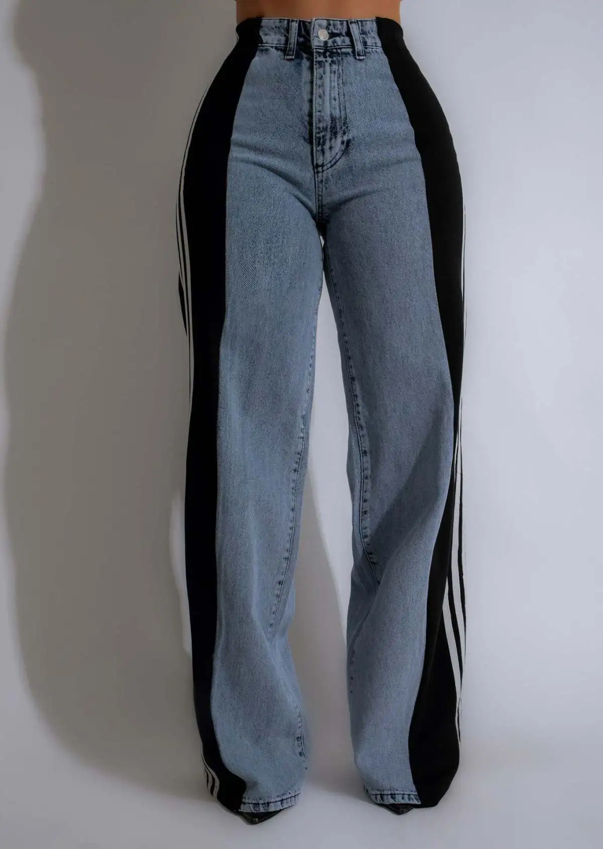 Wholesale Pantalones vaqueros de pierna ancha con tres rayas y costuras de moda para mujer de calle