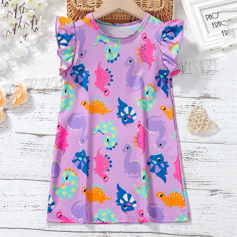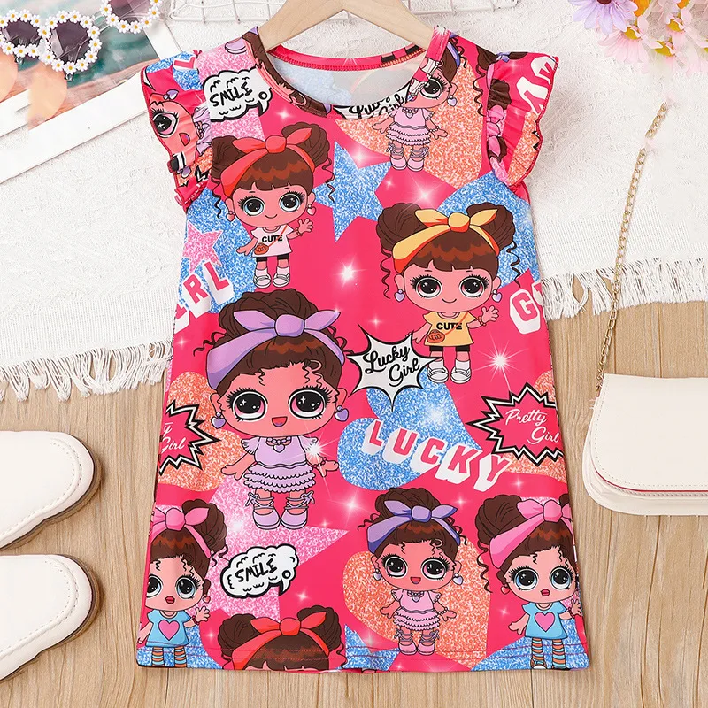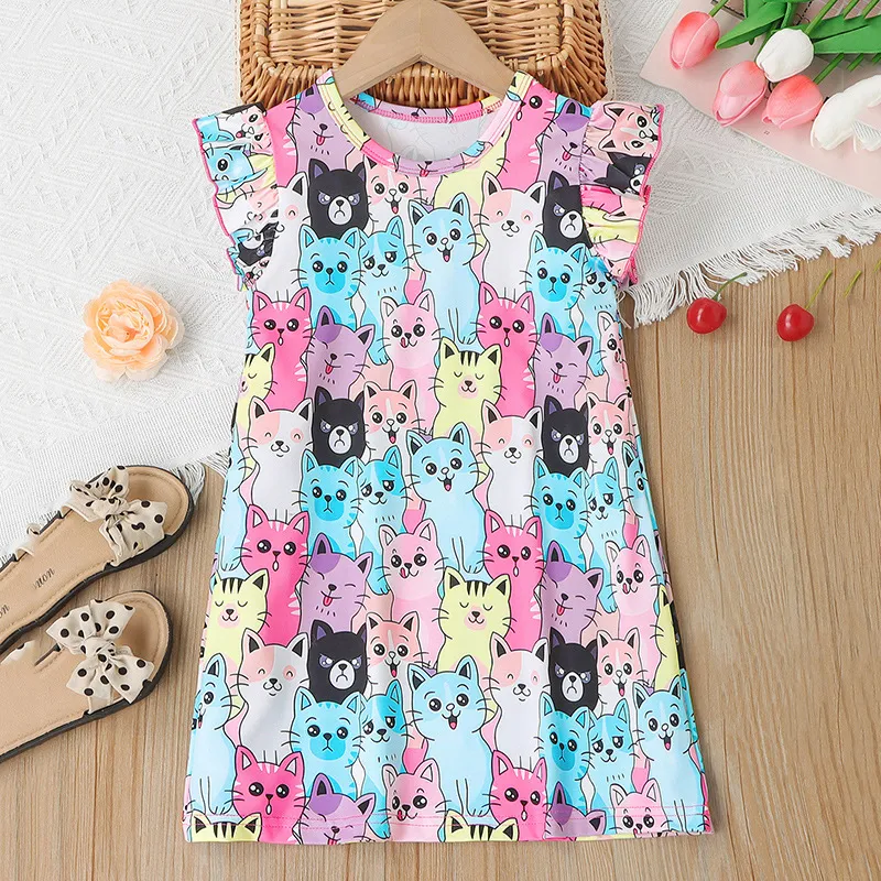 Wholesale Vestido sin mangas con estampado de dibujos animados lindo e informal para niñas pequeñas