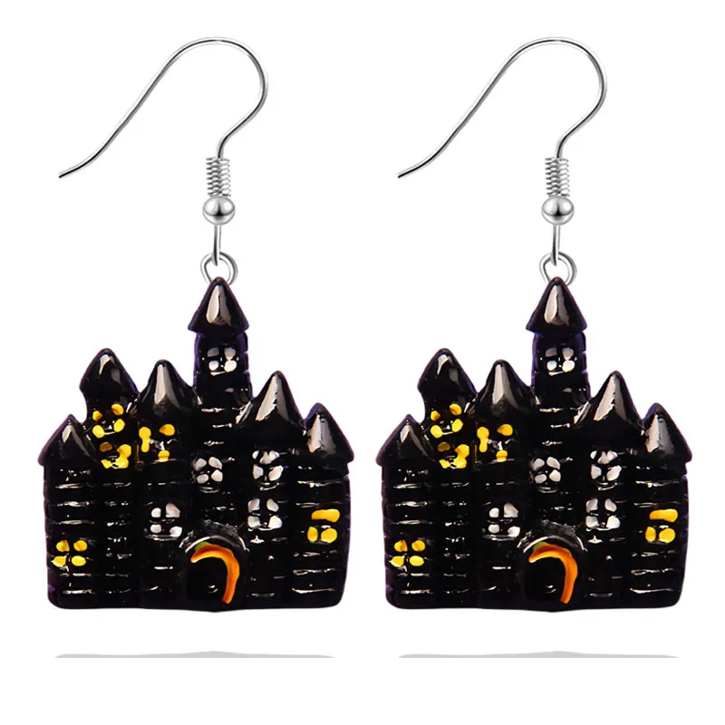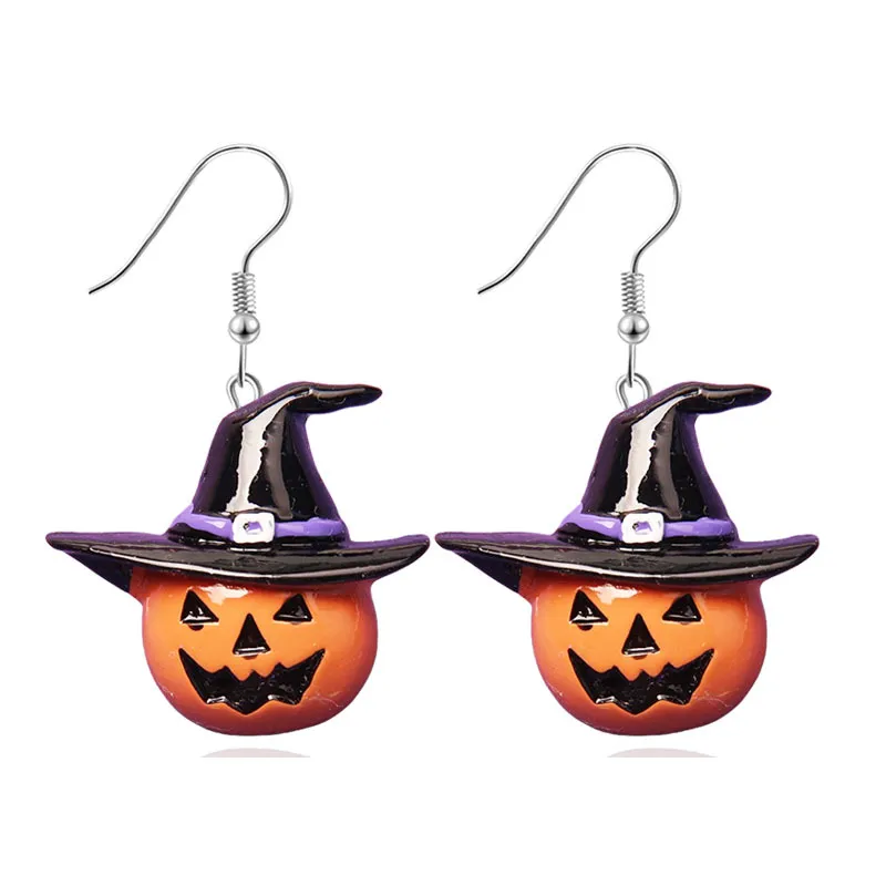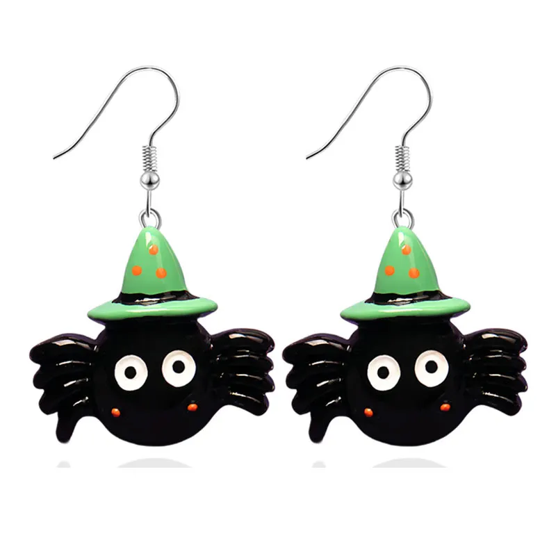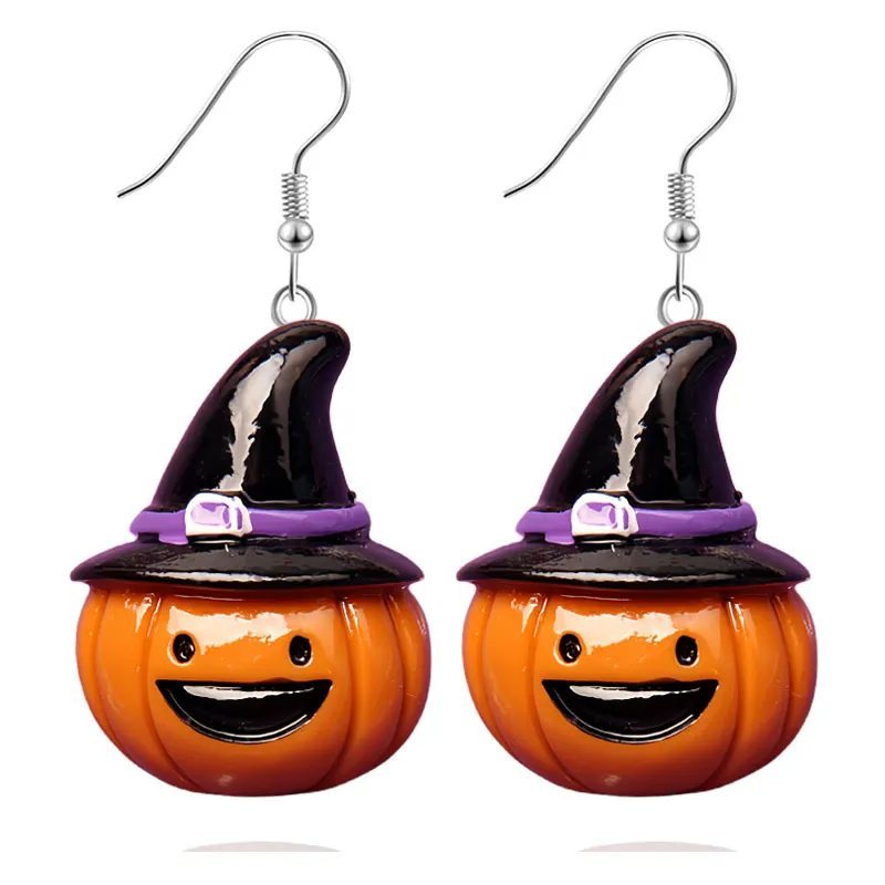 Wholesale Pendientes de resina con forma de murciélago, calabaza y fantasma divertidos para Halloween para mujer