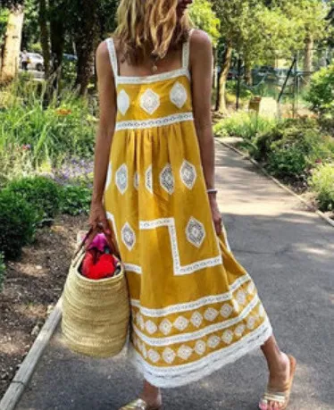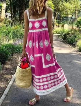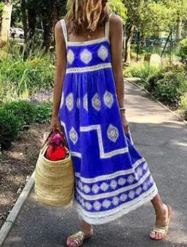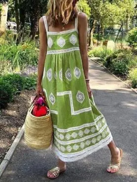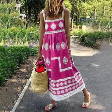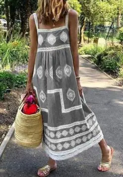 Wholesale Vestido holgado sin mangas con estampado informal de vacaciones a la moda para mujer