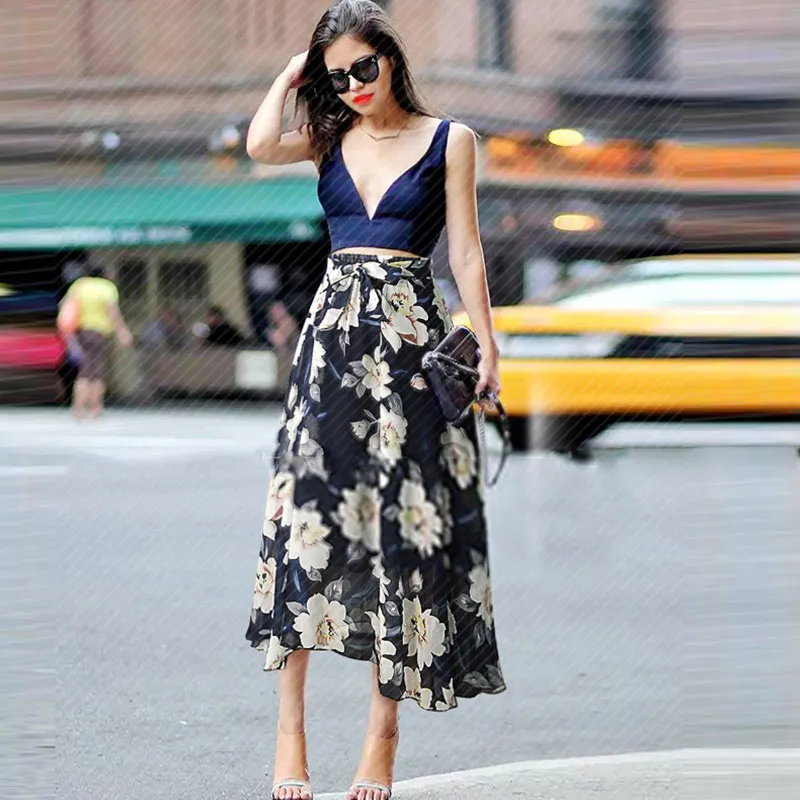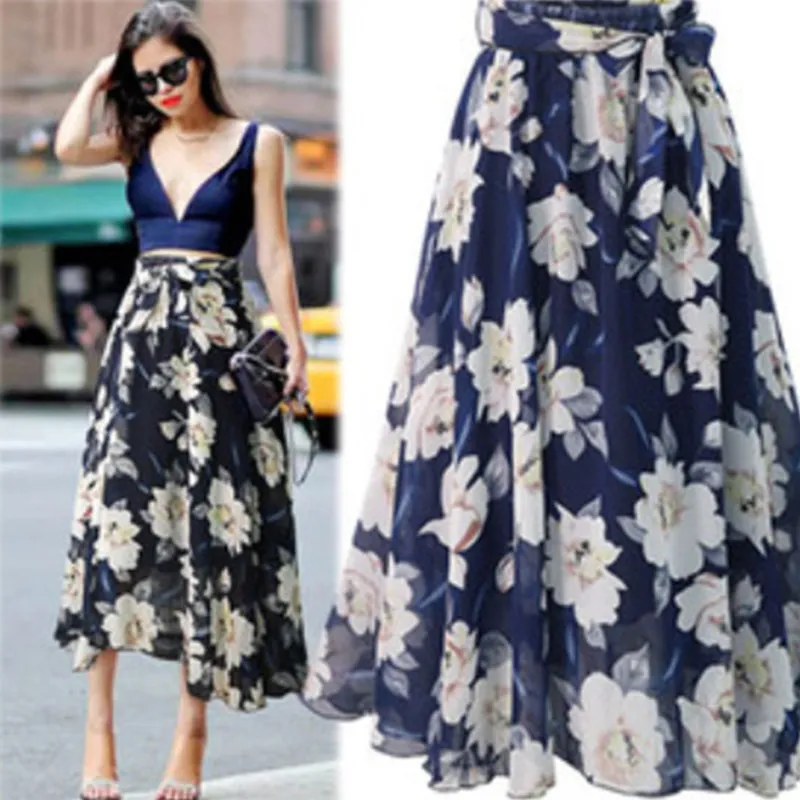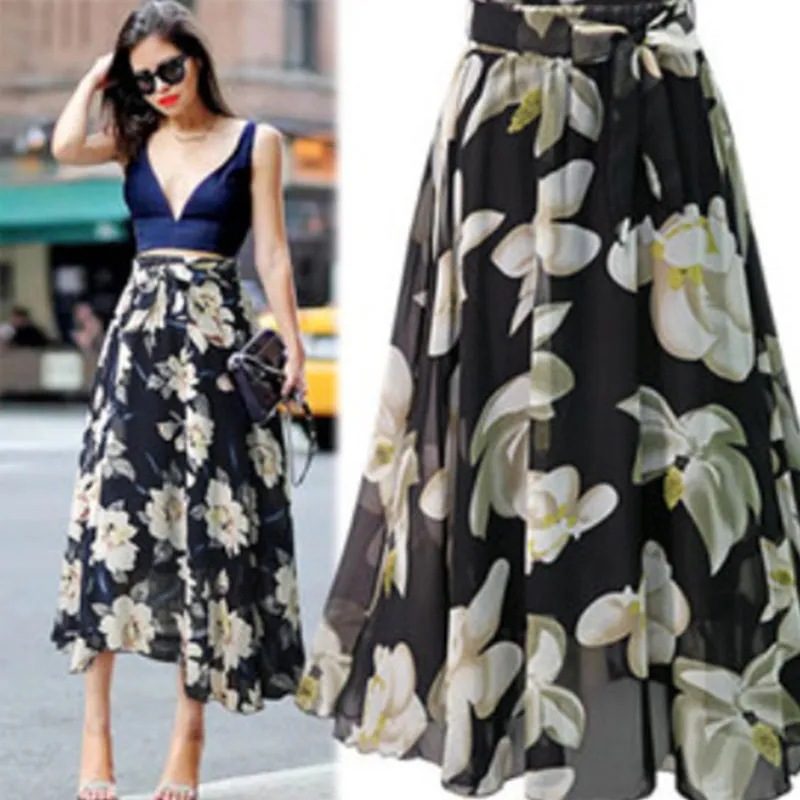 Wholesale Jupe en mousseline de soie à imprimé floral pour femmes de grande taille l-5xl