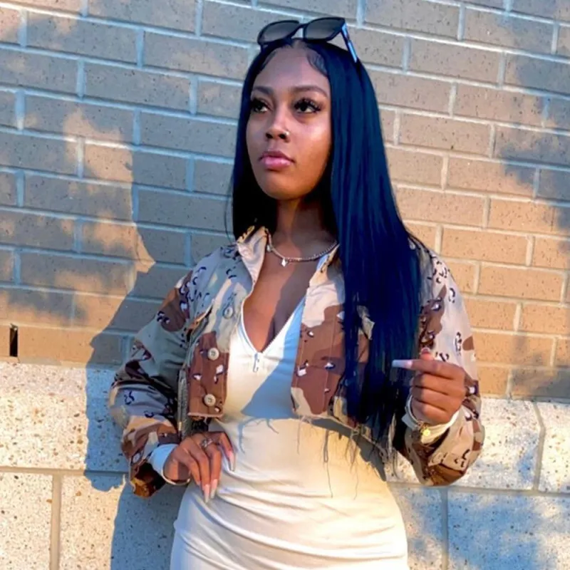 Wholesale veste courte à manches longues avec poche et imprimé camouflage pour femme