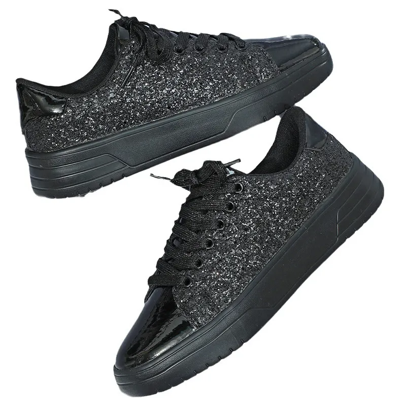 Wholesale Baskets basses à lacets et semelles épaisses pour femmes, chaussures décontractées et tendance, en PU brillant et pailleté