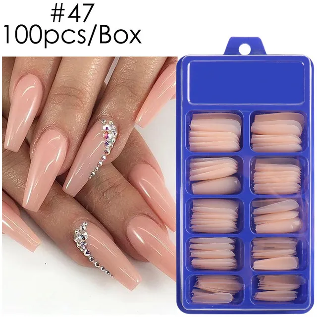 Wholesale nail art boîte bleue autocollant complet porter long ballet faux ongle