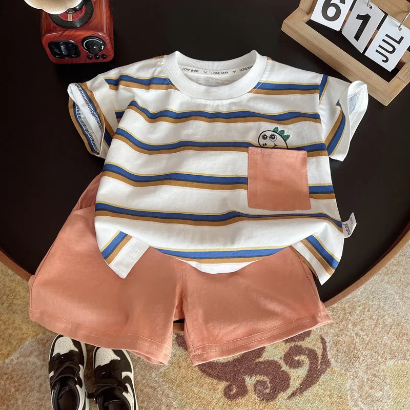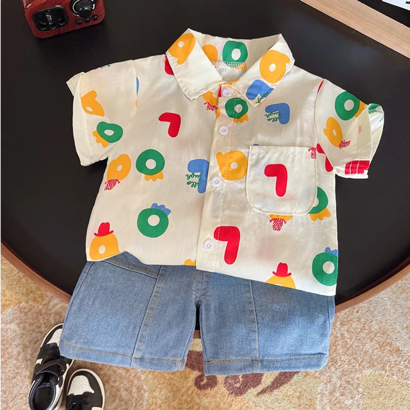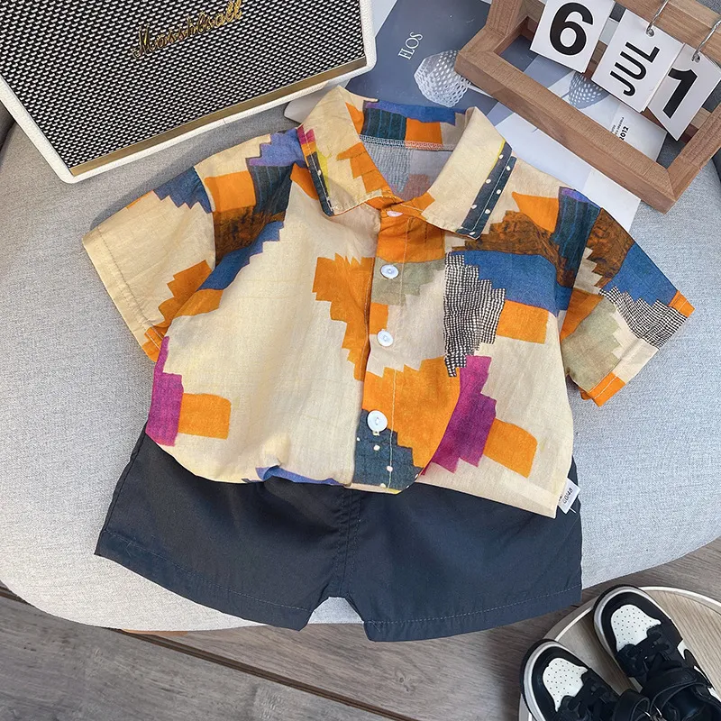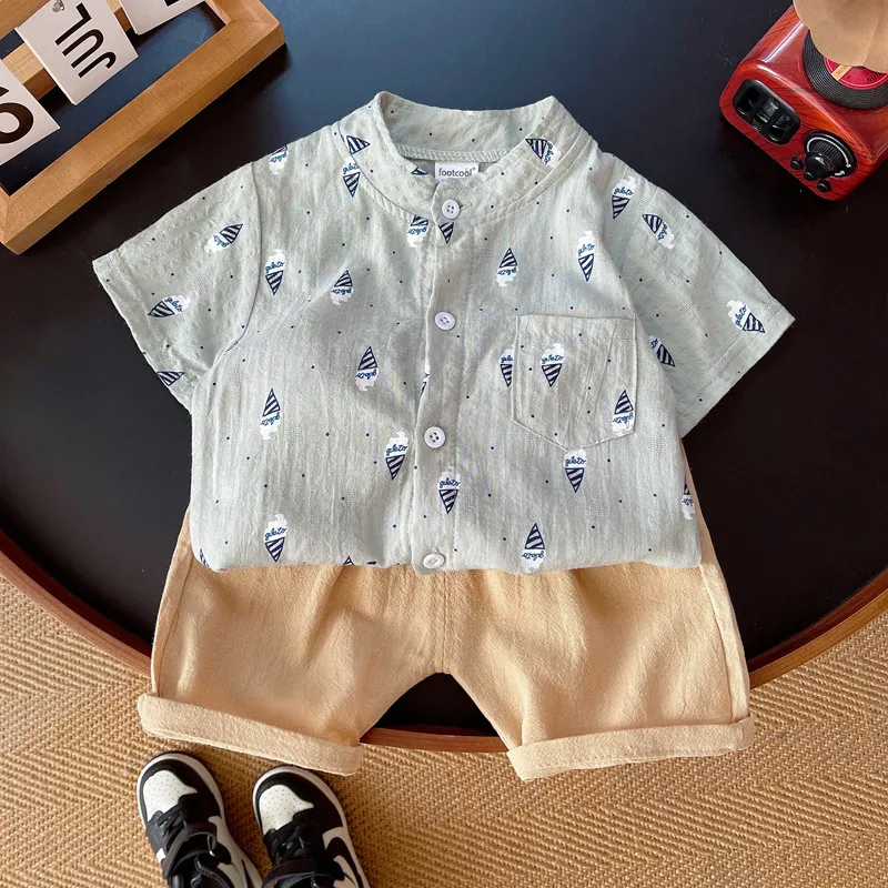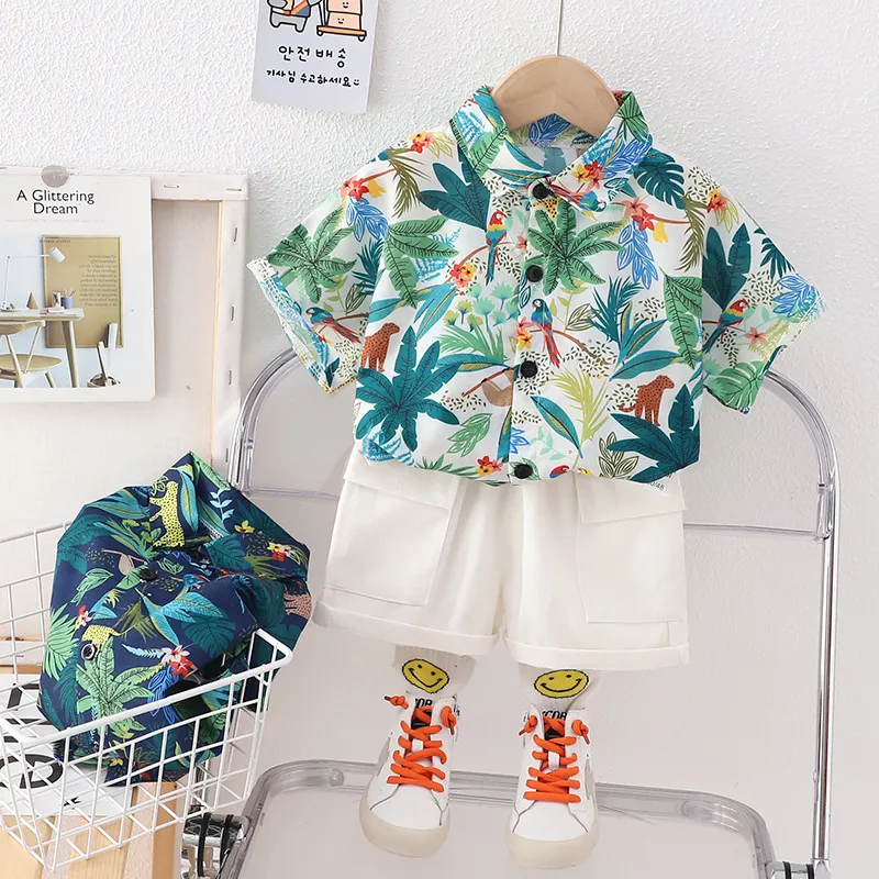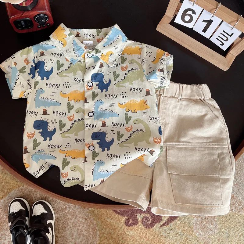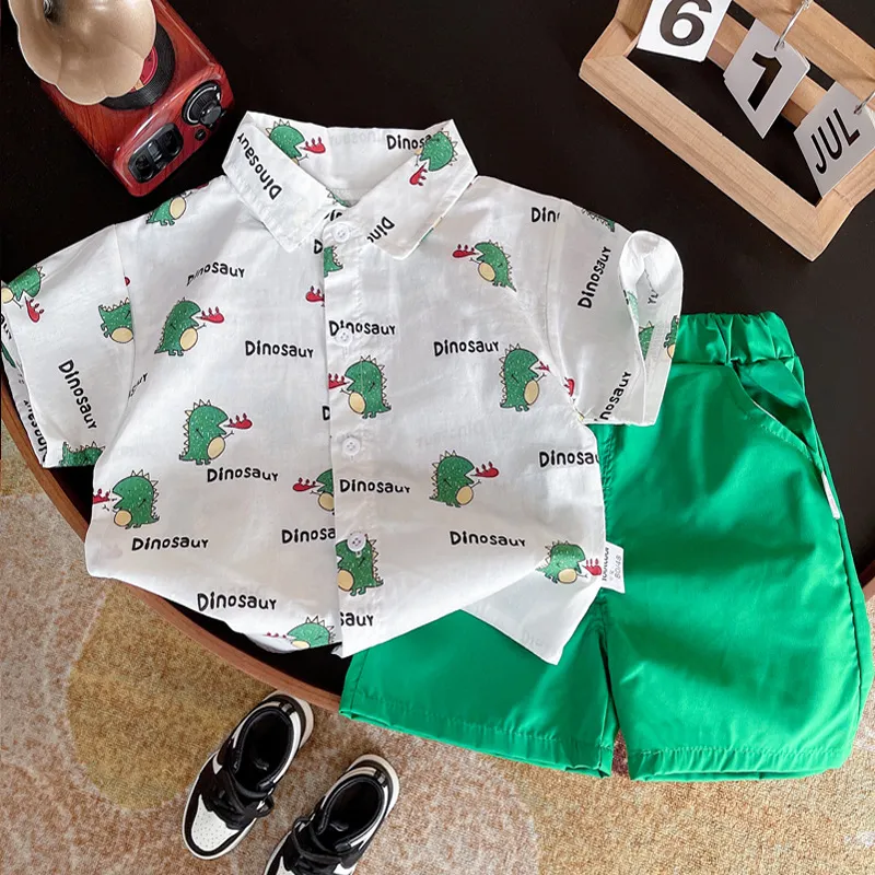 Wholesale ensemble deux pièces chemise à manches courtes décontractée à imprimé dinosaure pour garçon