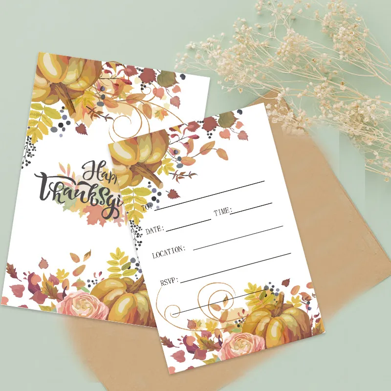 Lot de 10 cartes d'invitation recto verso en forme de feuille d'érable et de citrouille