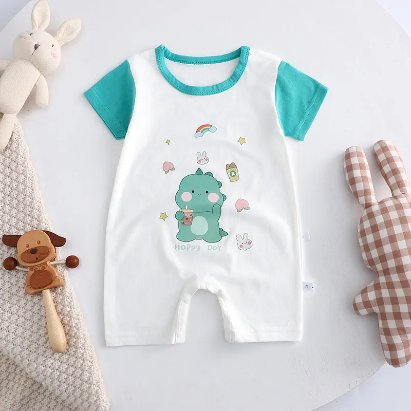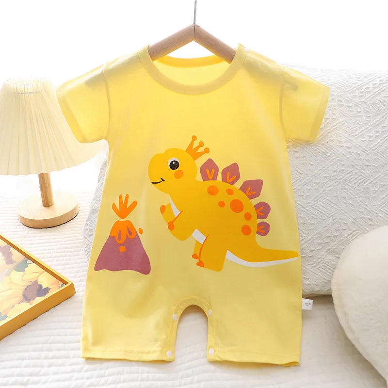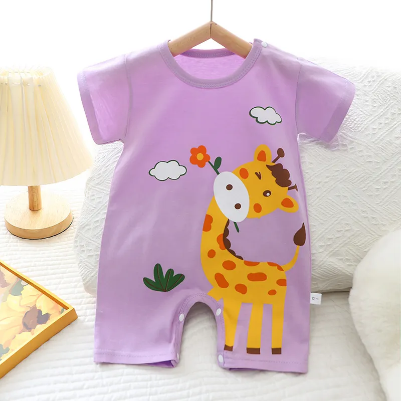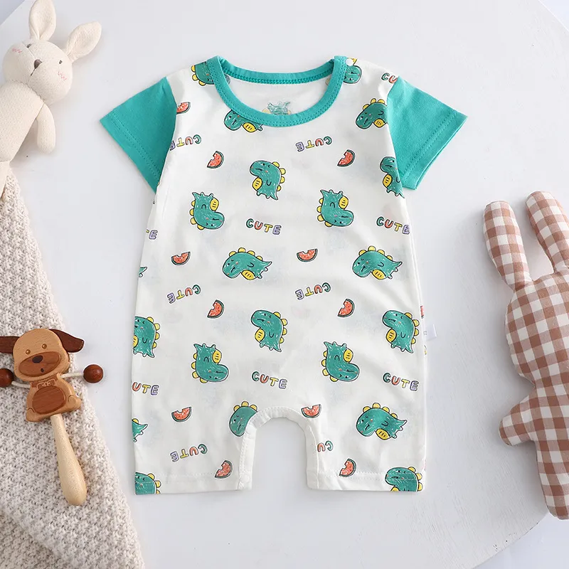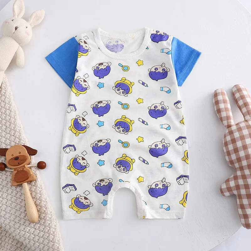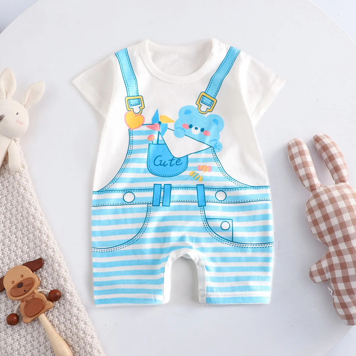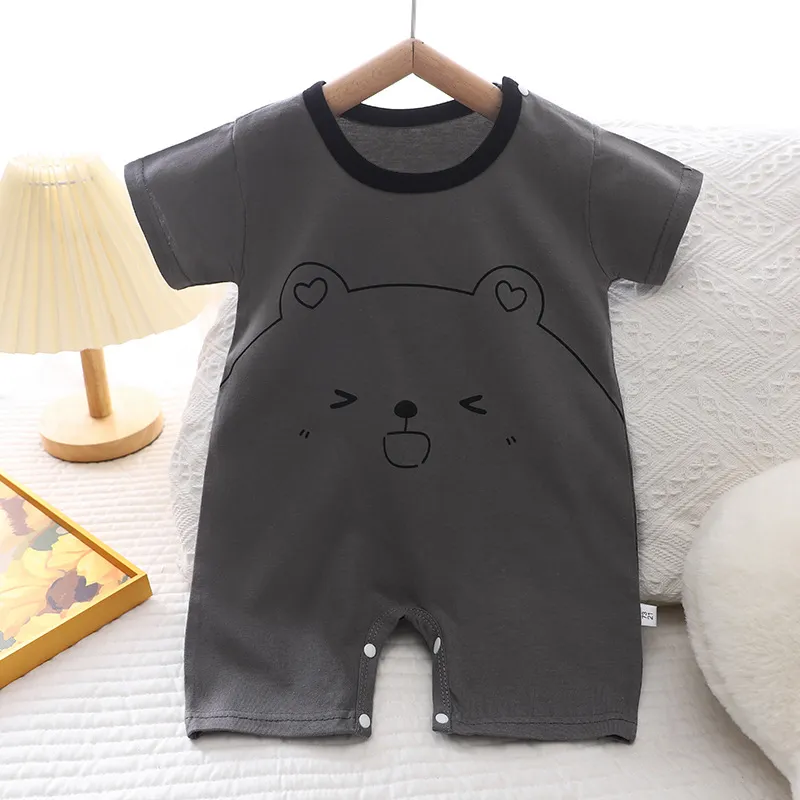 Wholesale barboteuse à manches courtes pour enfants et bébés garçons et filles, décontractée et mignonne, avec imprimé dessin animé