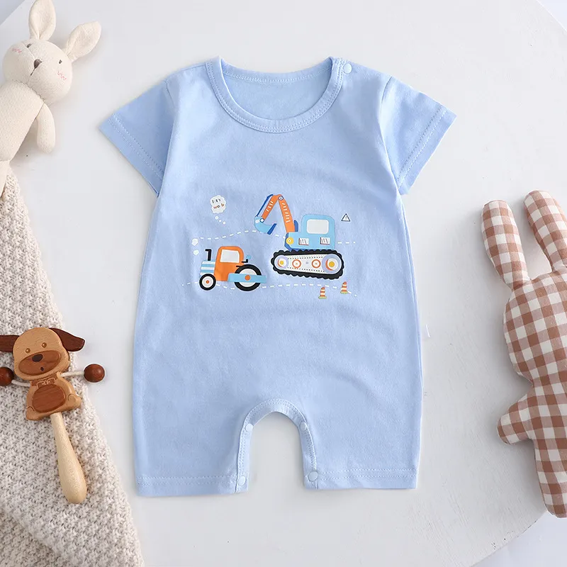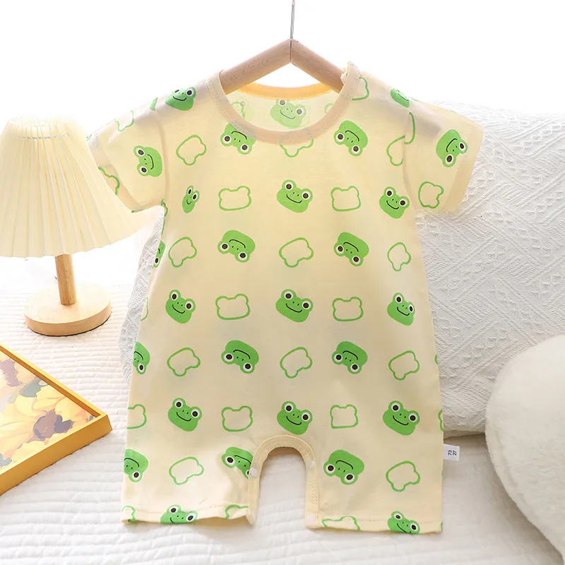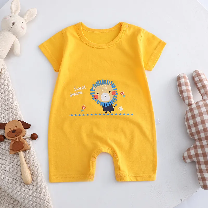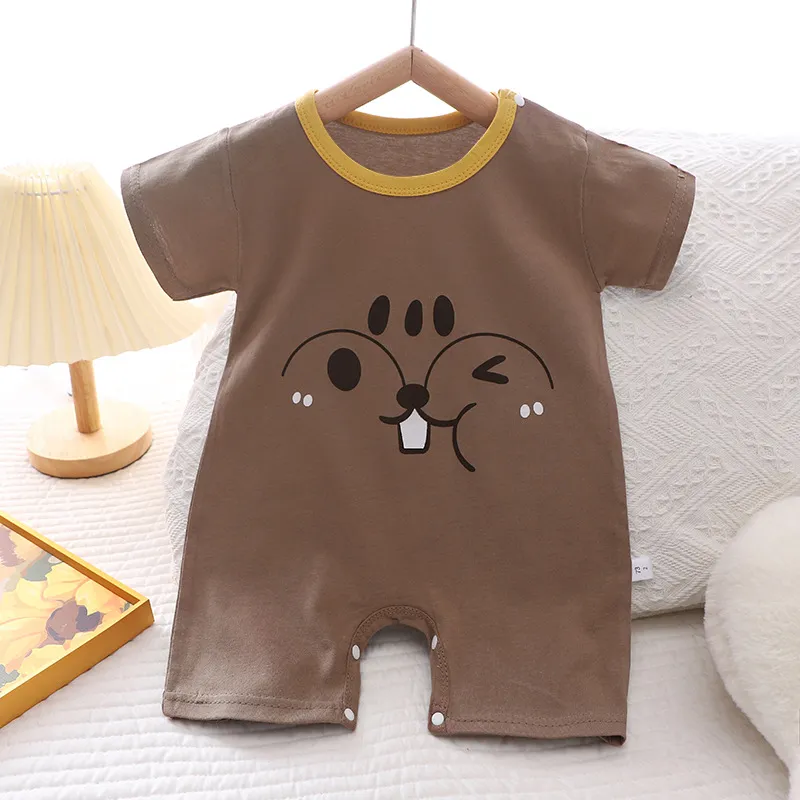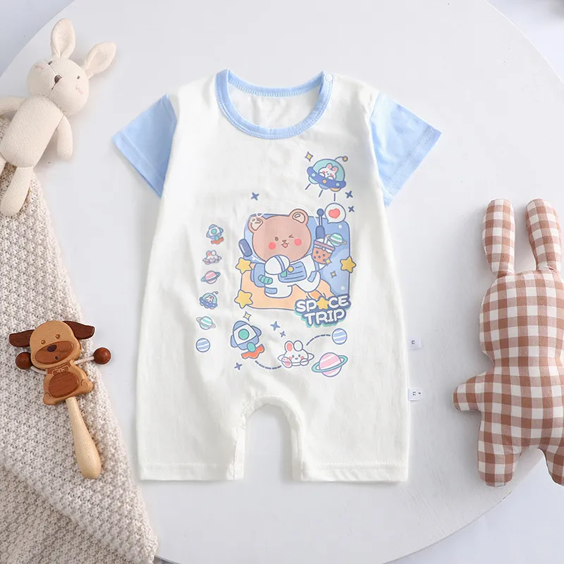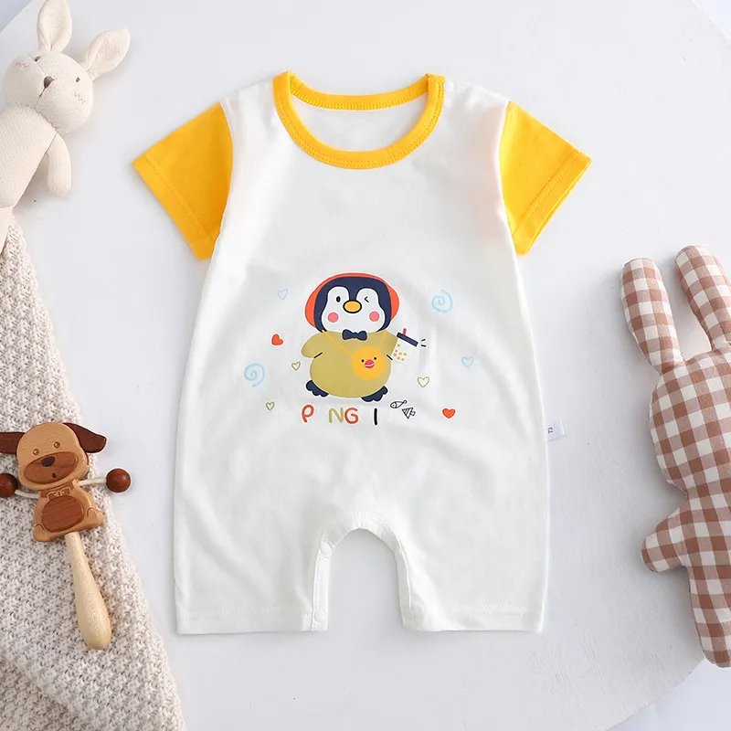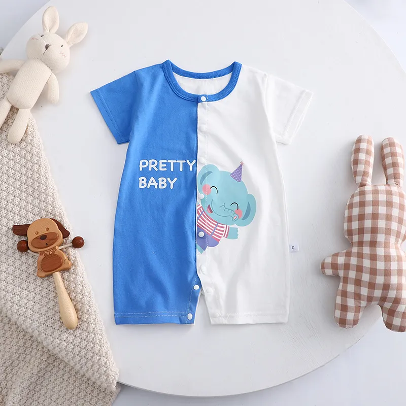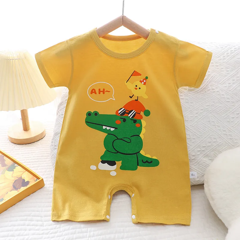 Wholesale barboteuse à manches courtes pour enfants et bébés garçons et filles, décontractée et mignonne, avec imprimé dessin animé