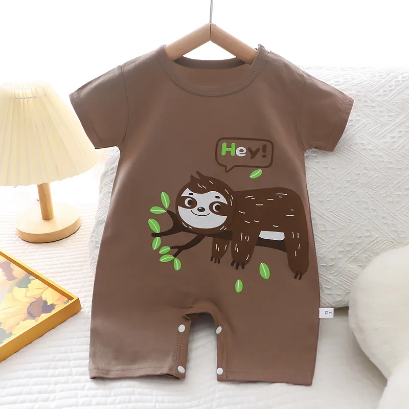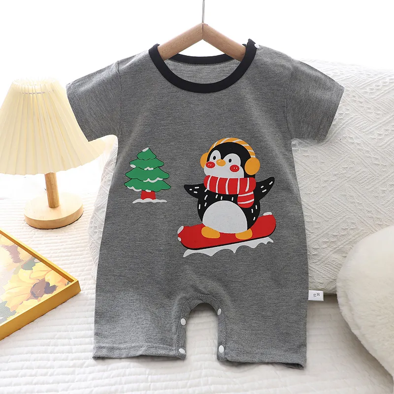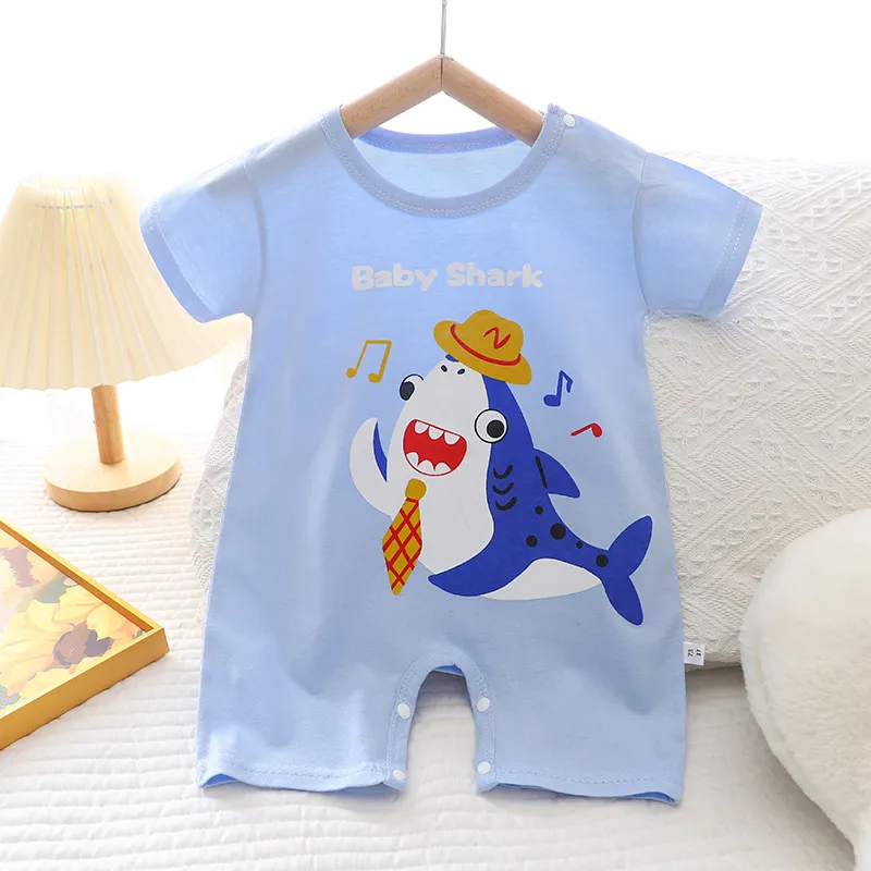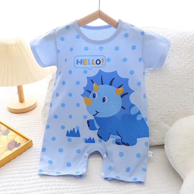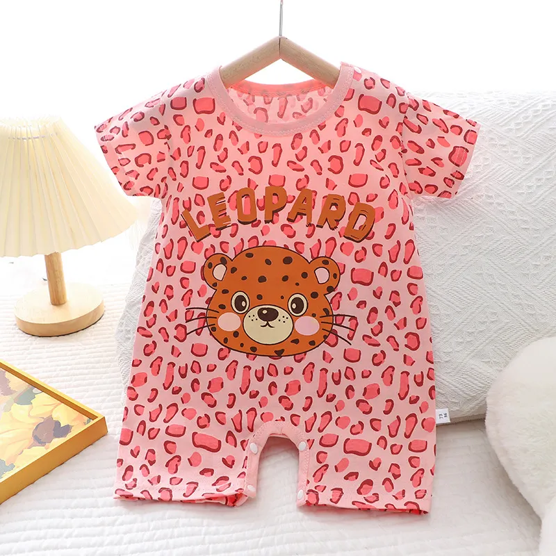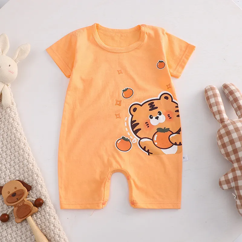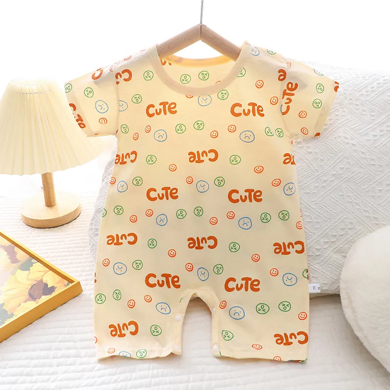 Wholesale barboteuse à manches courtes pour enfants et bébés garçons et filles, décontractée et mignonne, avec imprimé dessin animé