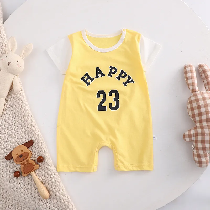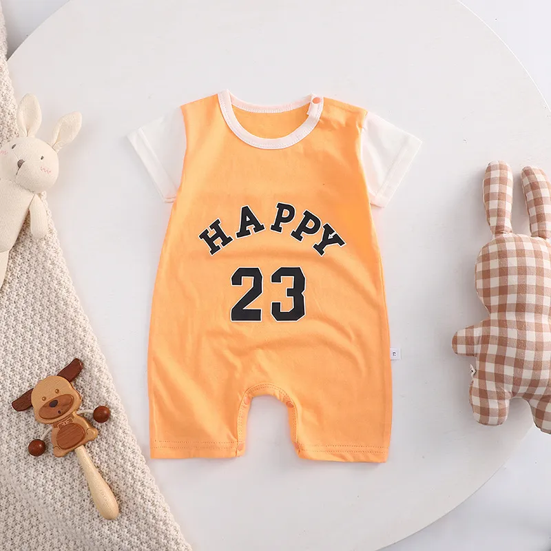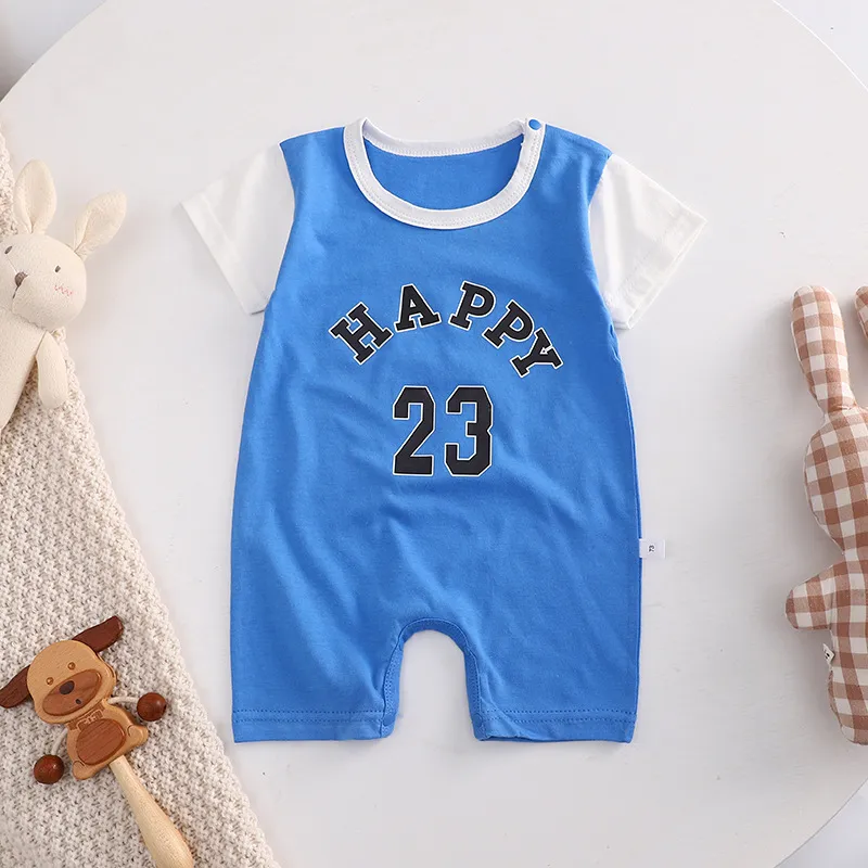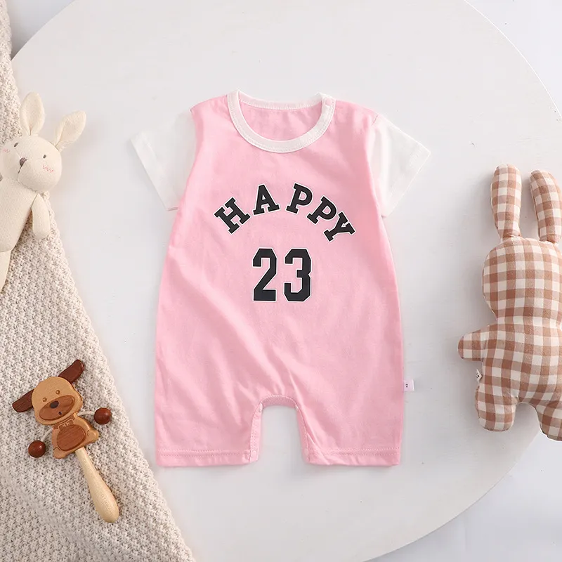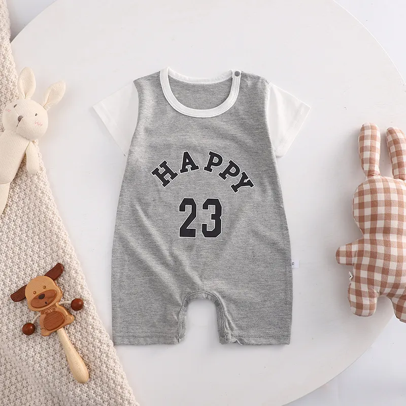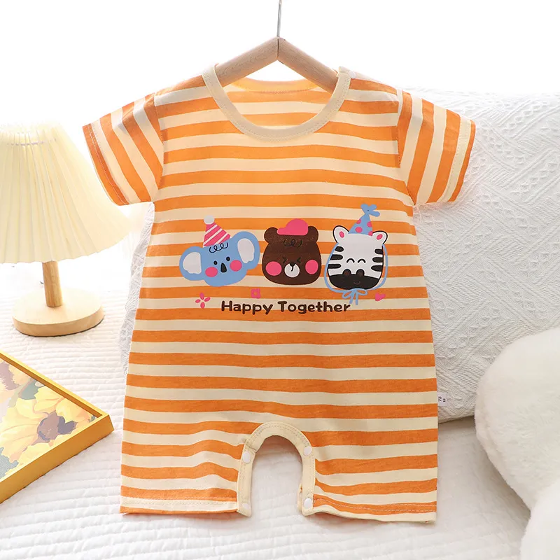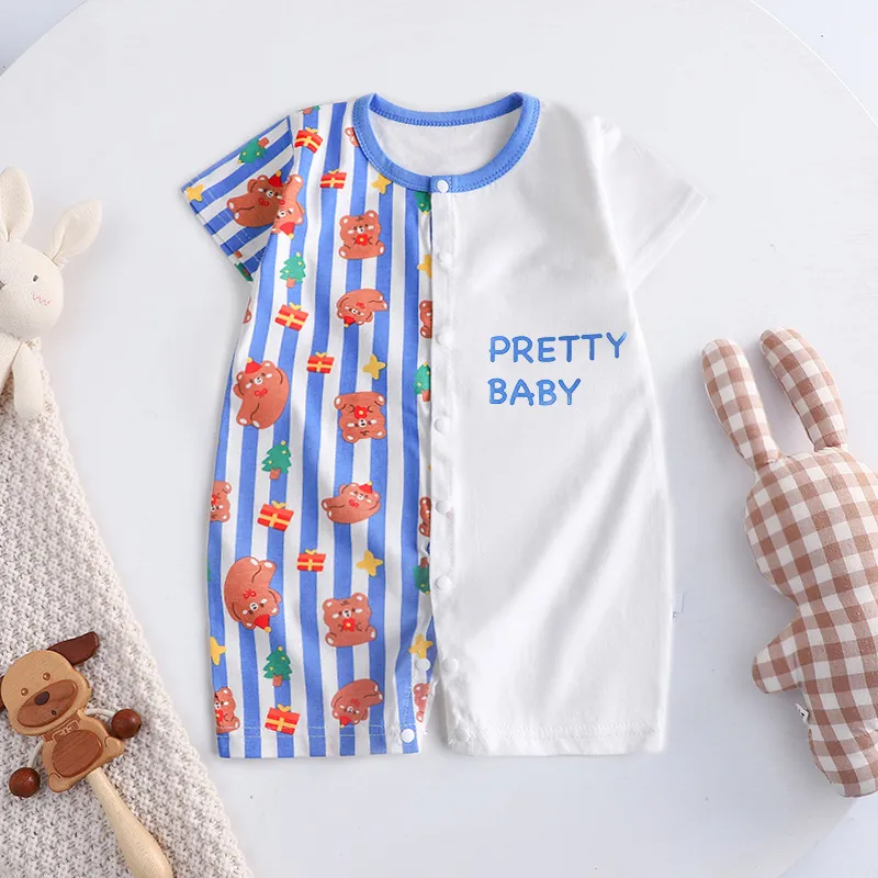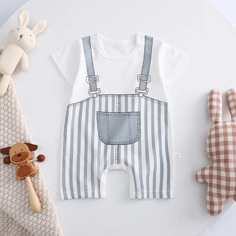 Wholesale barboteuse à manches courtes pour enfants et bébés garçons et filles, décontractée et mignonne, avec imprimé dessin animé