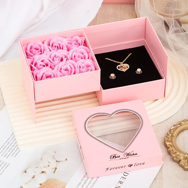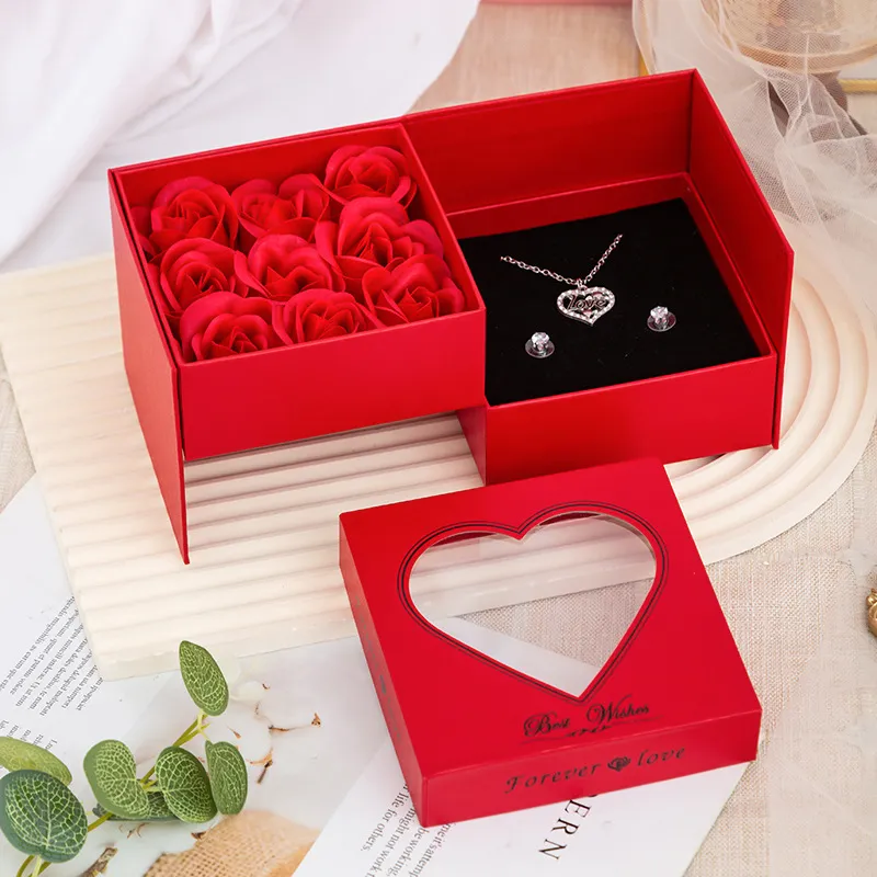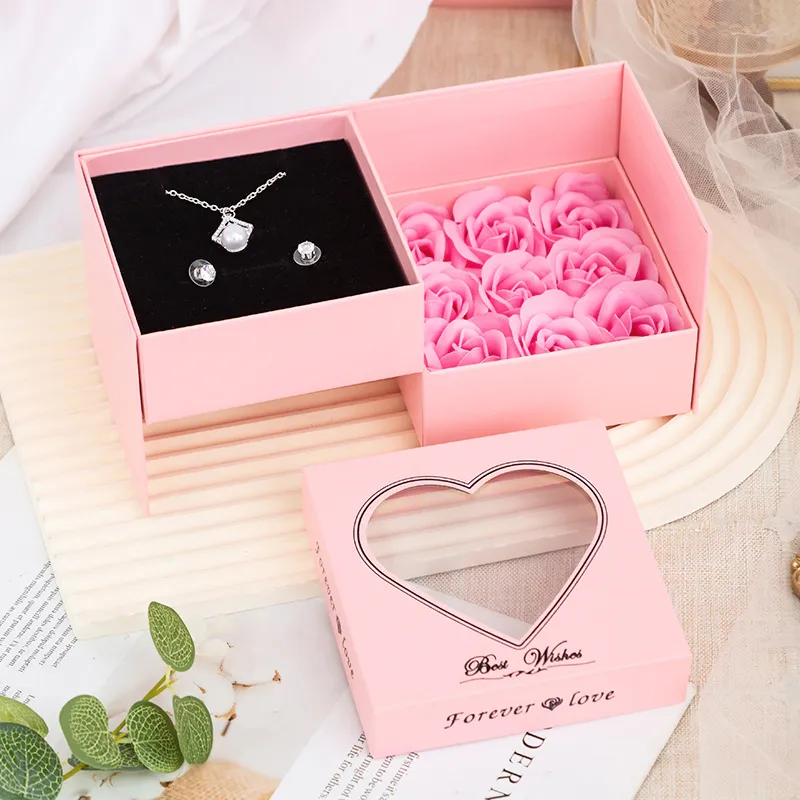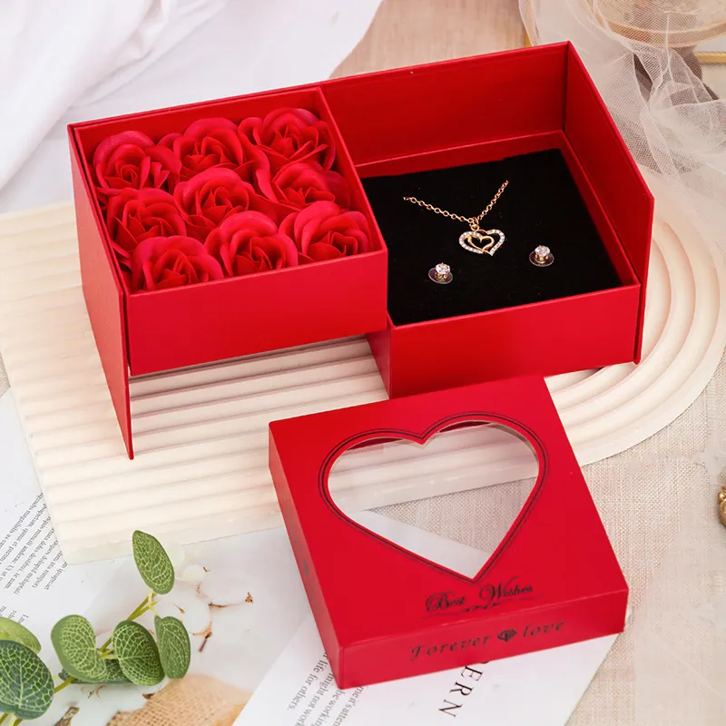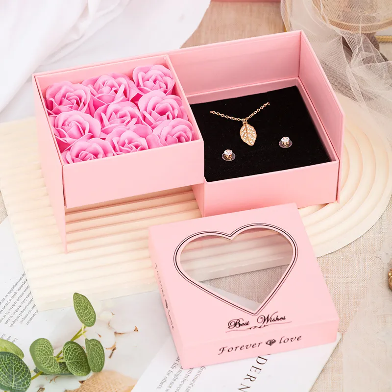 Wholesale Coffret cadeau de savon à fleurs de rose et bijoux fantaisie pour la Saint-Valentin