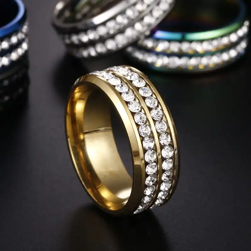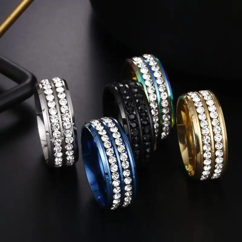 Wholesale Men Fashion Double Row Rhinestone Decorative Ring
