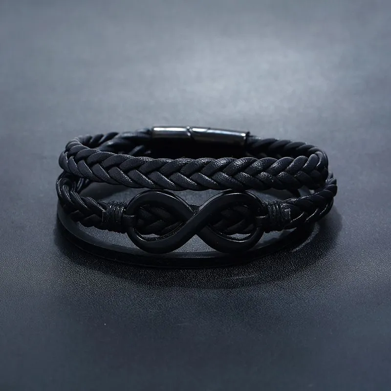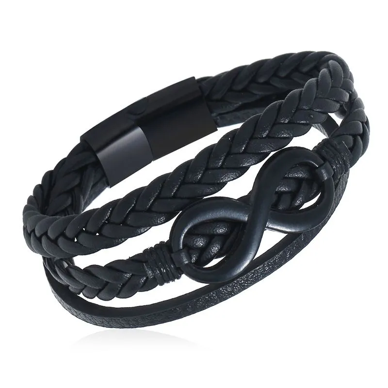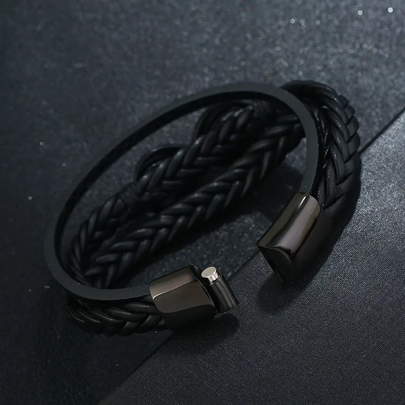 Wholesale Simple Multilayer Design Men Fashion Leather Braided Steel Buckle Bracelet
