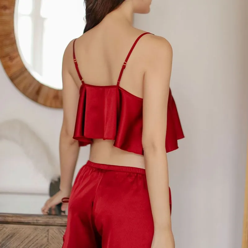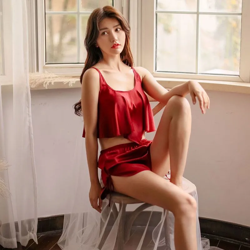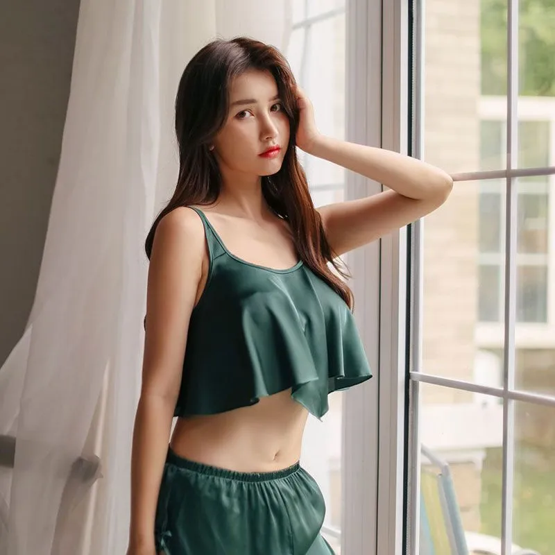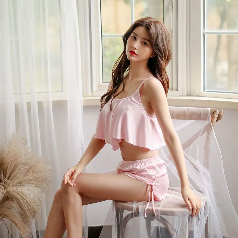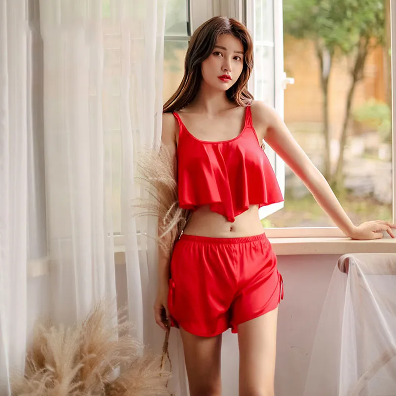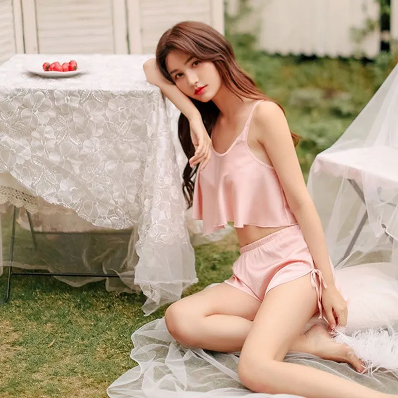 Wholesale Women Solid Color Smooth Satin Camis And Shorts 2pcs/set Sleepwear