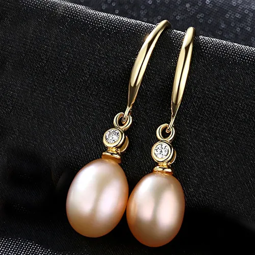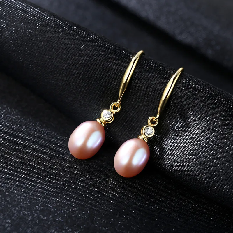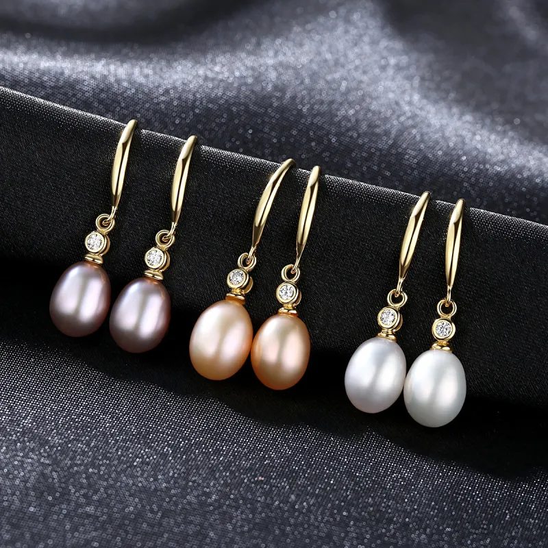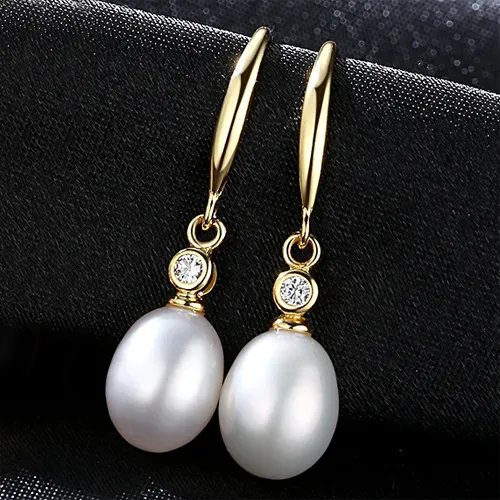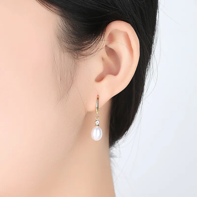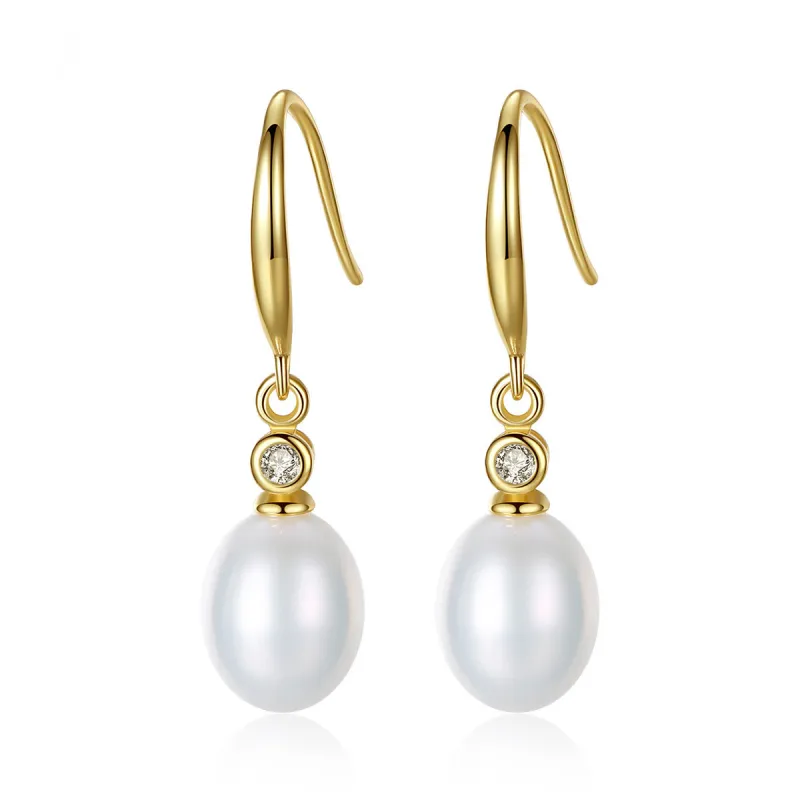 Wholesale High Quality 18K Gold Plated 925 Silver Freshwater Pearl Zircon Drop Earrings