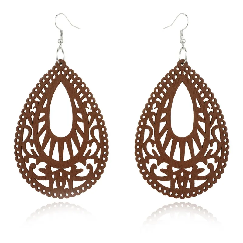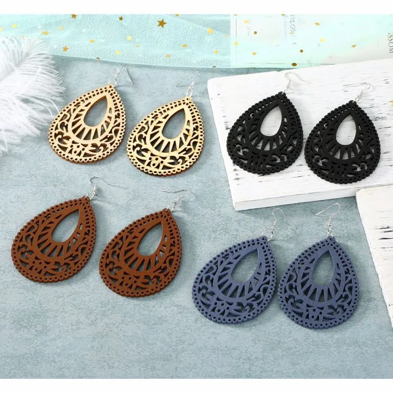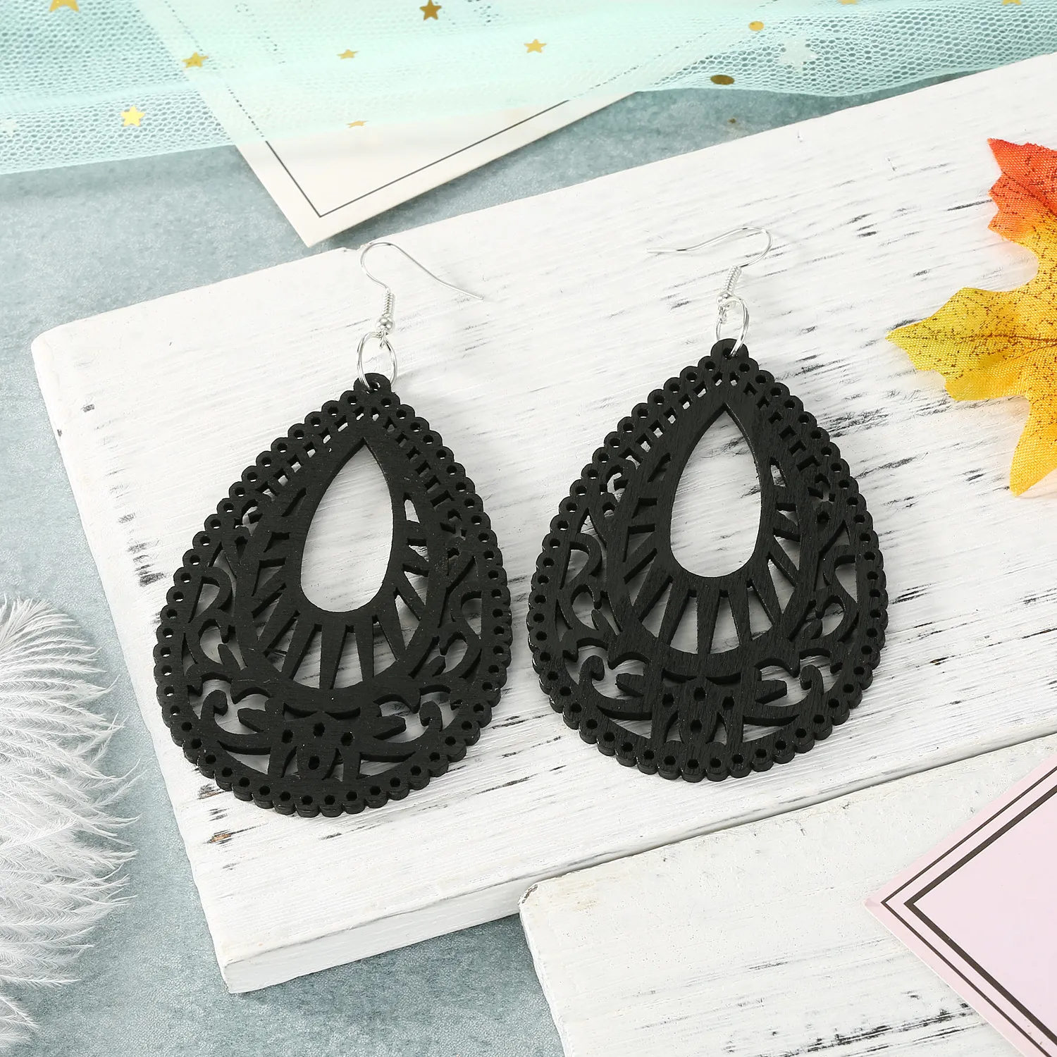 Wholesale Women Vintage Bohemia Hollow Out Design Solid Color Water Drop Shaped Drop Earrings