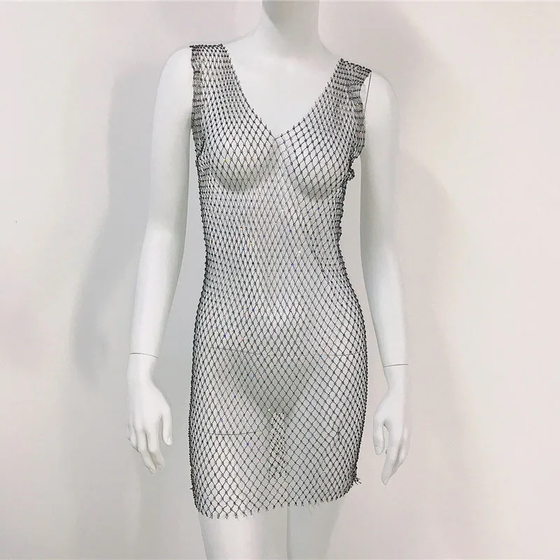 Wholesale Women'S Sexy Mesh Glitter Diamond Fishnet Dress Beach Bikini Coverup