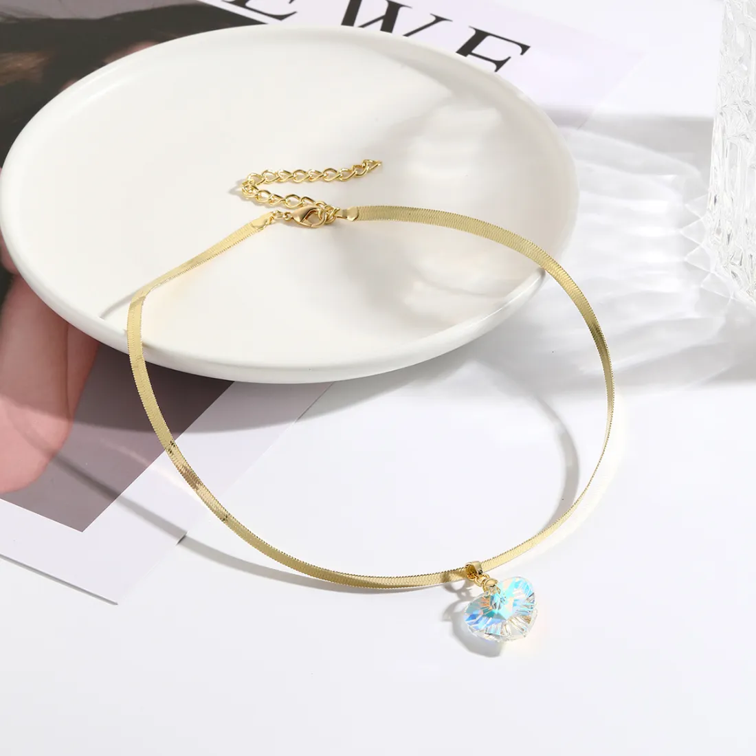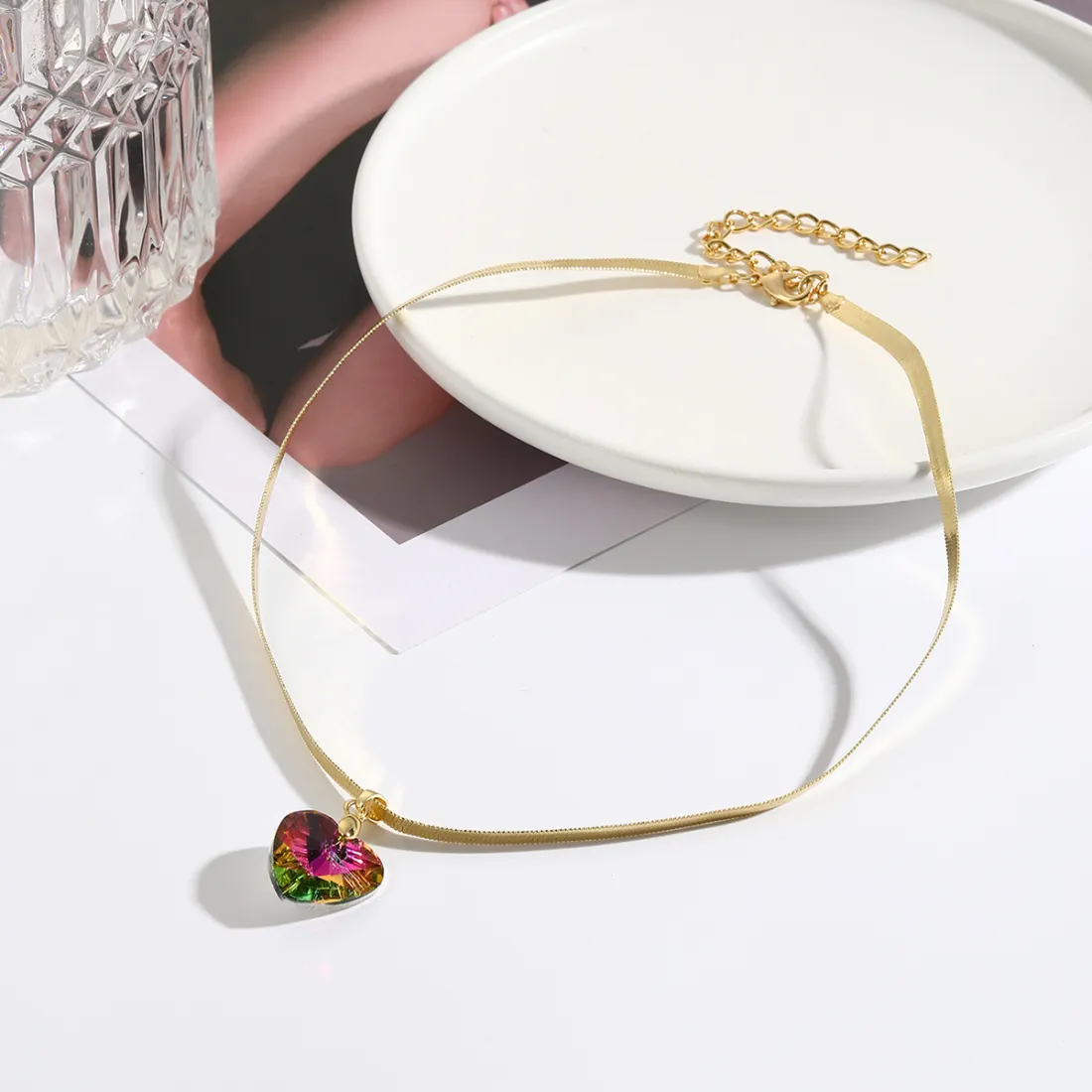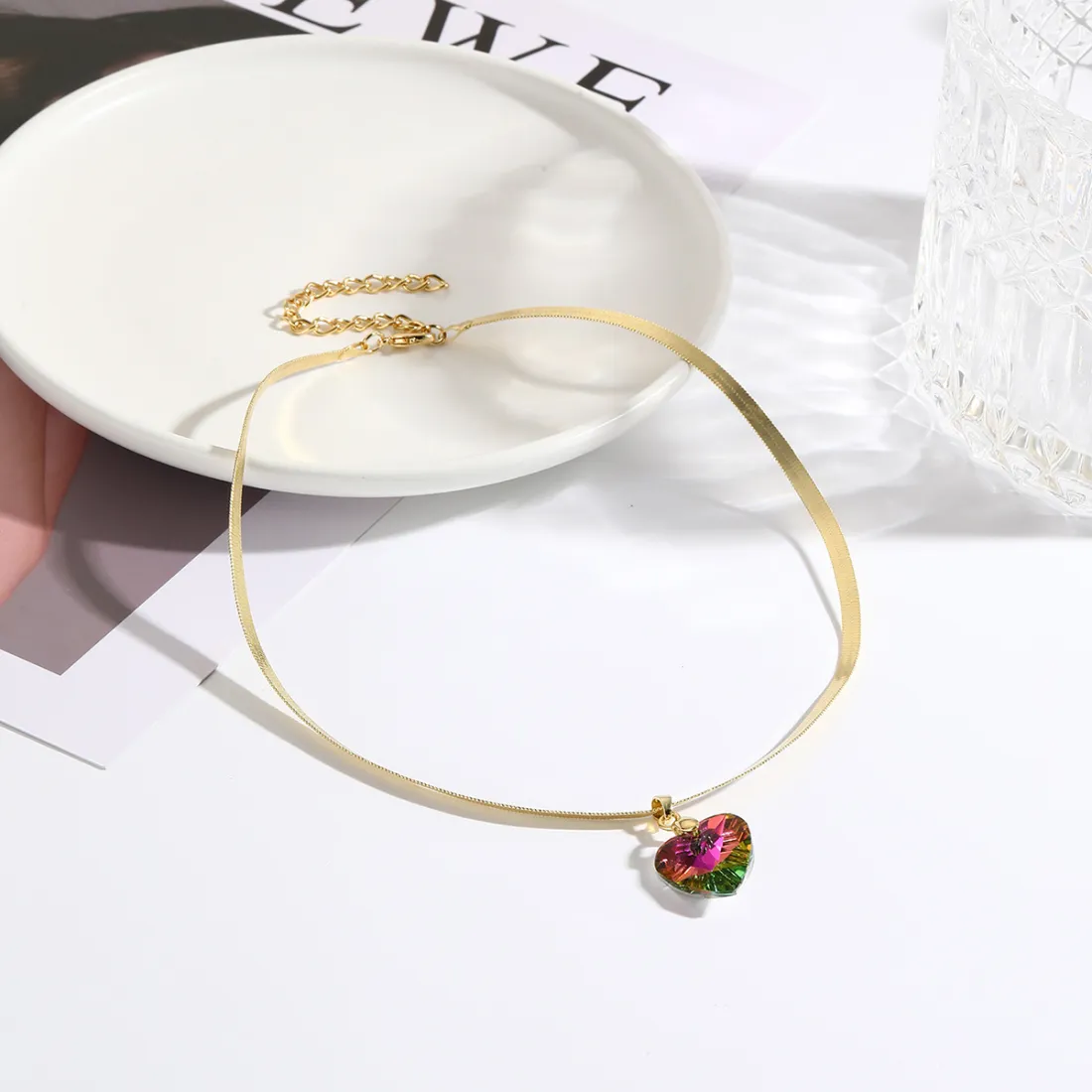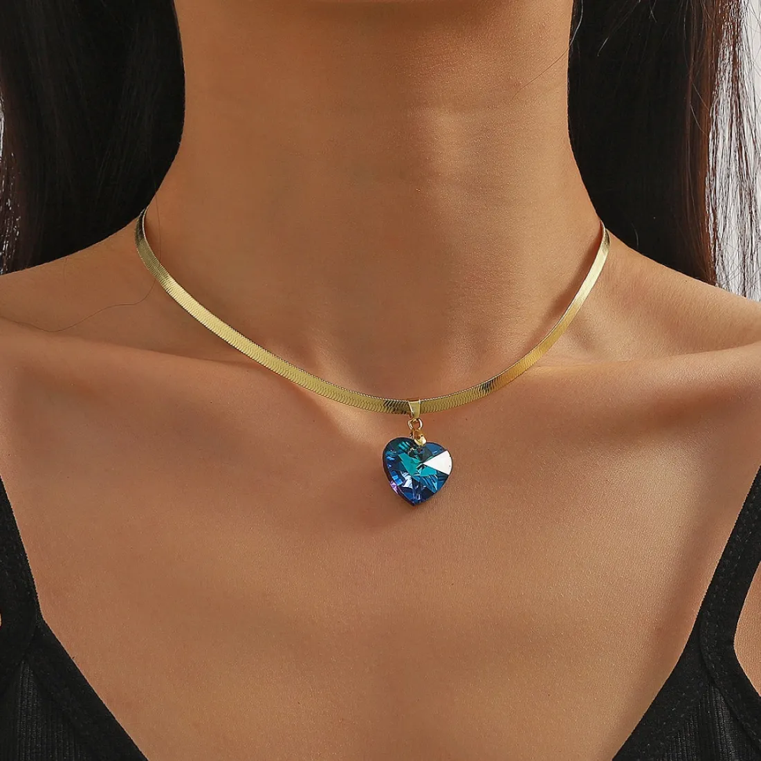 N2303-46 Flat Snake Heart Blue Colorful Crystal
