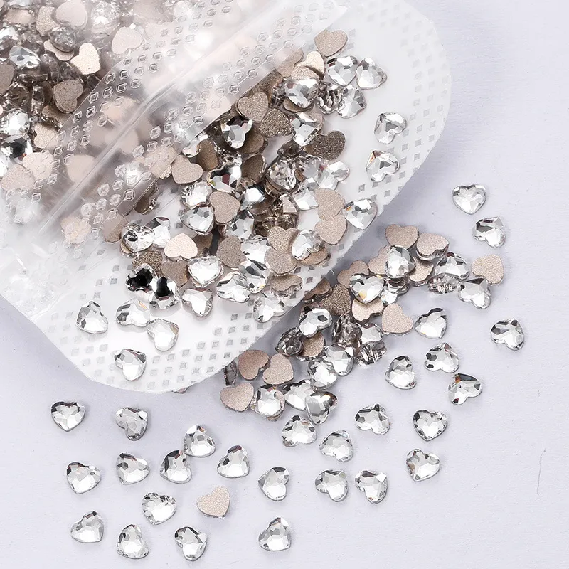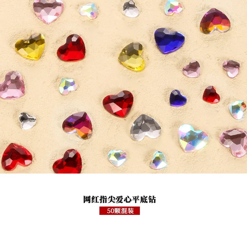Wholesale Women Fashion Simple Multicolor Heart-Shaped Flat-Bottomed Special-Shaped Diamond Nail Art Decorative Jewelry 50-Bag
