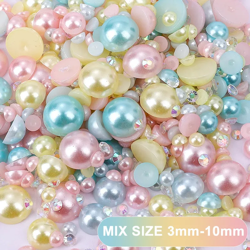 Wholesale Women Simple Multicolor Semicircle Flat Bottom Pearl Resin Diamond Nail Art DIY Decorative Accessories