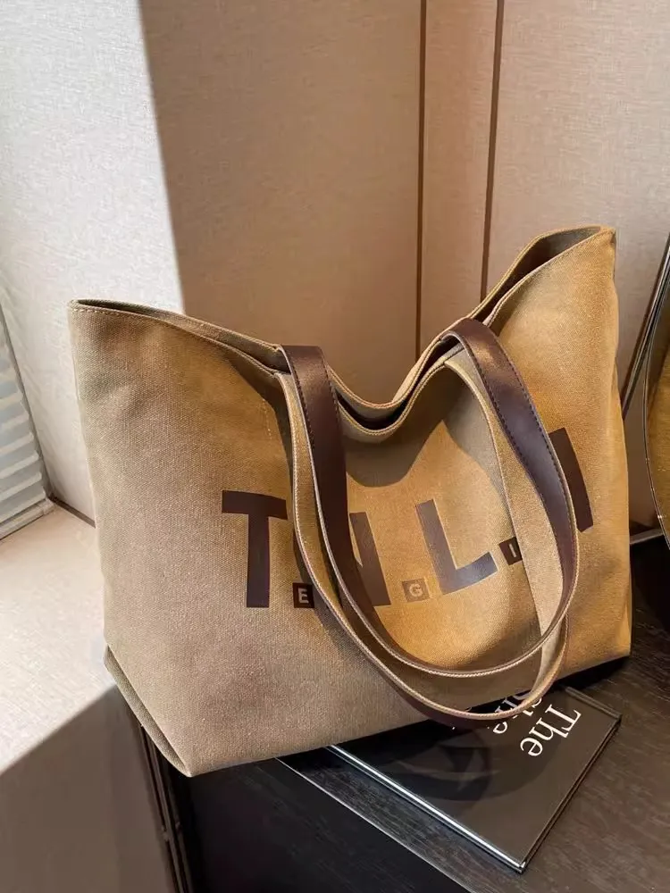 Wholesale Women Fashion Casual Letter Printed Canvas Large Capacity Tote Bag